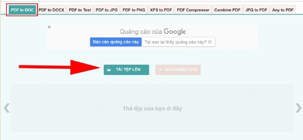 Bước 2: Tiếp theo, bạn nhấn vào nút Tải tệp lên > chọn file PDF cần chuyển đổi thành file Word. Ngay sau đó, nền tảng này sẽ tự động chuyển đổi tệp được upload lên sang định dạng Word mong muốn.
