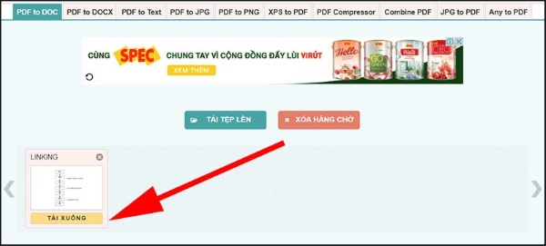 Bước 3: Cuối cùng, bạn nhấn chọn vào nút Tải xuống sau khi file đã được hoàn tất chuyển đổi sang file Word thành công.
