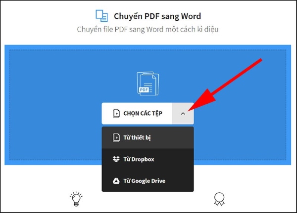 Bước 2: Khi hoàn tất việc tải file lên web, bạn chọn vào phần Chuyển sang Word > nhấn chọn vào nút Chọn tùy chọn để bắt đầu quá trình chuyển đổi định dạng tập tin.