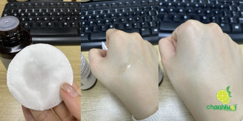 Kết cấu: Dạng nước lỏng, trong suốt, thấm nhanh và không gây nhờn rít, nhưng ban đầu vẫn có thể gây châm chích, xót nhẹ khi da chưa quen.