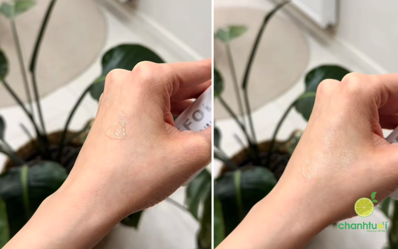 Kết cấu: Dạng gel trong suốt, hơi nhớt nhẹ nhưng thẩm thấu tương đối nhanh, mang lại cảm giác mát và ẩm nhẹ trên da – một điểm cộng lớn cho làn da khô, thiếu nước vì không bị bay hơi hay khô căng.