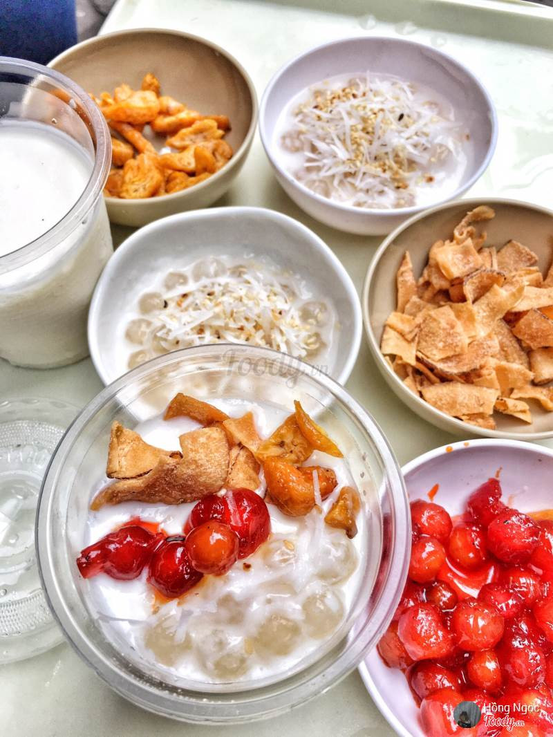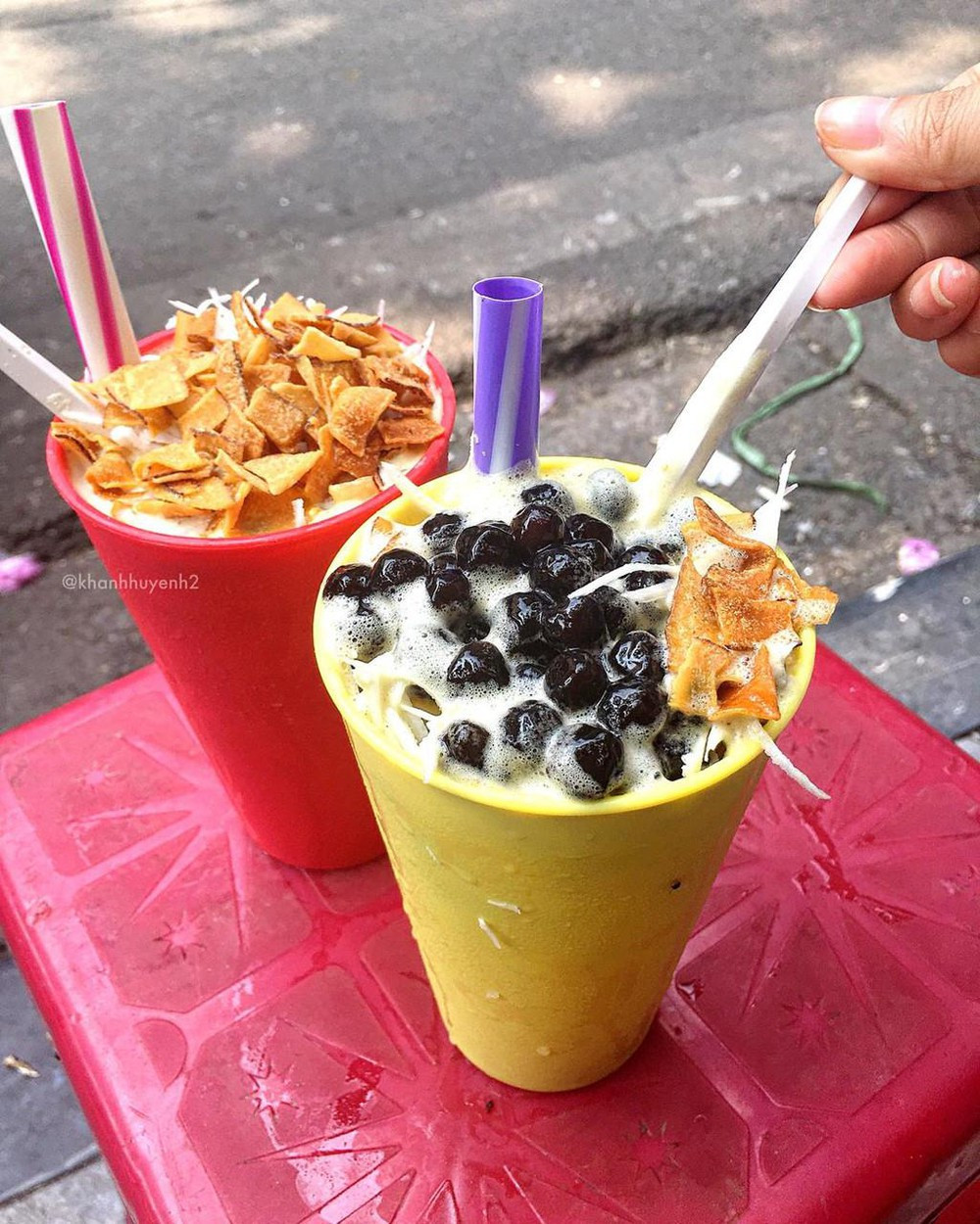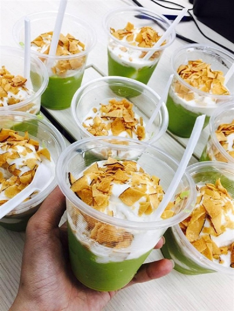Món ăn cực kỳ giải khát này đã và đang làm “mưa gió” gần đây với cái tên khá dài nhưng khi nghe lại rất hấp dẫn và thu hút khiến các bạn trẻ phải tới thưởng thức ngay. Một ly sữa chua nước cốt dừa trân châu sẽ bán với mức giá từ 15.000 tới 20.000đ, được làm từ sữa chua đông lạnh xắt thành từng miếng nhỏ, rưới lên một ít nước cốt dừa và thêm trân châu cùng một số loại topping khác, trong đó dừa khô là topping khá được yêu thích bởi sự giòn rụm khác hẳn so với các loại topping khác. Khi ăn kèm với sữa chua có vị chưa dịu, dừa khô giúp cho món ăn thêm ngọt ngào và thú vị.