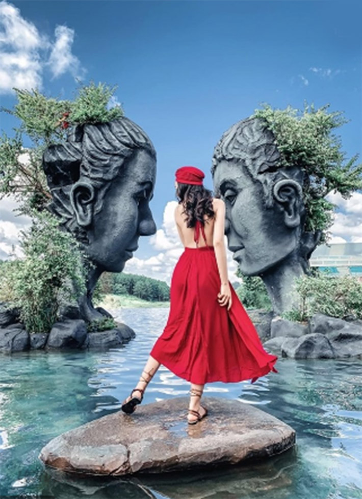 Hồ Vô Cực - nơi có tiểu cảnh đẹp mắt gồm hai bức tượng khổng lồ ở giữa, hướng mặt vào nhau đang “làm mưa làm gió” cộng đồng mạng
