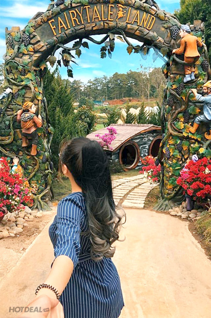 Xe đưa đoàn đi tham quan Ngôi làng cổ tích nhỏ xinh Dalat Fairytale Land được xây dựng dựa trên cảm hứng bất tận về thế giới thần tiên, không gian cũng như những tiểu cảnh nơi đây đều mang đậm chất cổ tích và thần thoại, với gam màu tươi vui, với những hình ảnh vẫn thường xuất hiện trong những câu chuyện cổ ngày trước.