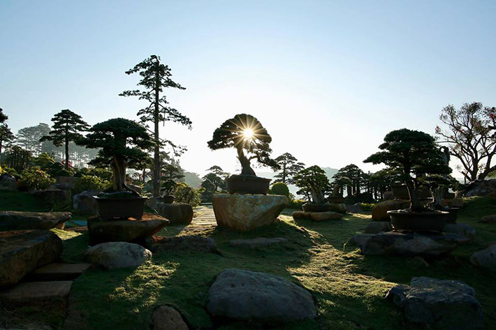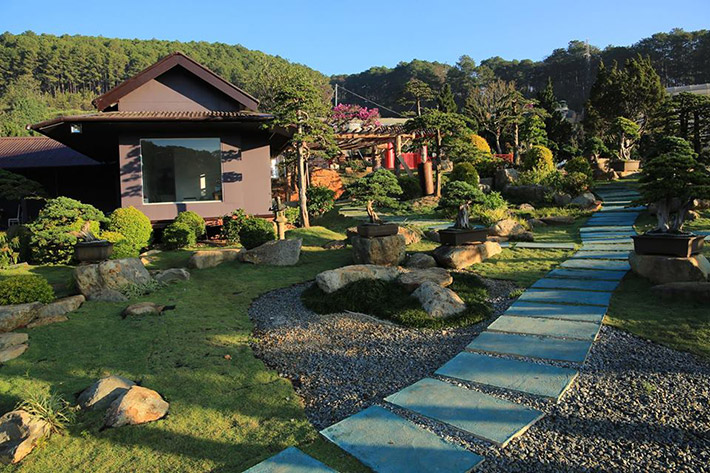 Tiếp tục hành trình đến với Que Garden, bạn sẽ cảm nhận như mình đang check-in thiên đường xanh nổi tiếng ở Nhật Bản với những khu vườn bonsai, hệ thống hồ cá Koi được thiết kế theo tiêu chuẩn Nhật Bản, tiểu cảnh đẹp mê hồn giữa thành phố ngàn hoa Đà Lạt.