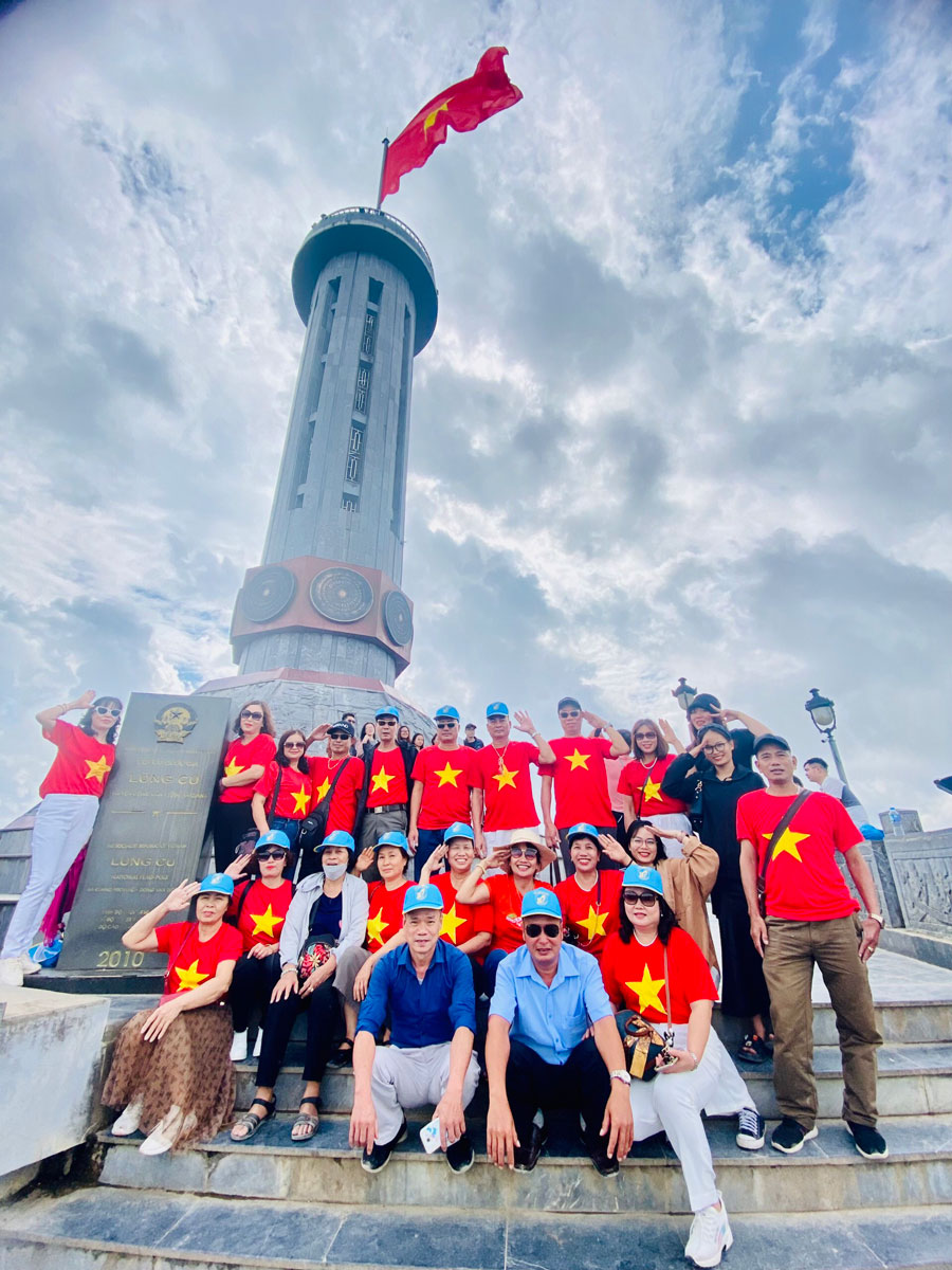 Đoàn khách của Antamtour check in tại Cột Cờ Lũng Cú - Hà Giang