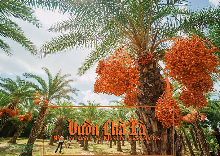 Bước vào làng hoa Sa Đéc, ngoai việc cảm nhận vẻ đẹp của hoa thì Quý Khách còn có thể “checkin” tại Cánh Đồng Chà Là lớn nhất Miền Tây. Với sắc vàng của những chùm Chà Là đang trĩu quả, trong vườn hiện có hơn 100 cây Chà Là đã trên 10 năm tuổi. Ngoài việc tham quan, chụp ảnh bên những chùm Chà Là vàng ươm, khách tham quan còn được tự tay hái trí và thưởng thức hương vị của trái Chà Là đang chín mọng. Bởi vì cây đang trong giai đoạn trổ bông nên chúng gây ấn tượng bởi màu sắc vàng rực - thu hút mọi ánh nhìn của du khách.
