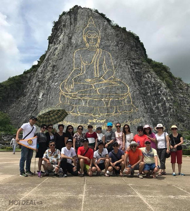 - Tiếp tục tham quan Trân Bảo Phật Sơn (Khao Chee Chan): Tượng Phật được khắc nổi bằng vàng ròng trên 1 vách núi, do Thái Tử khắc hoạ dâng tặng Quốc Vương Rama IX, được nhiều du khách truyền miệng là ngọn núi Phật dát vàng huyền bí, quý khách tìm đến đây với mục đích vừa chiêm ngưỡng vẻ đẹp độc đáo của ngọn núi Phật dát vàng vừa được cầu mong an lành, hạnh phúc cho bản thân, gia đình, bạn bè.
