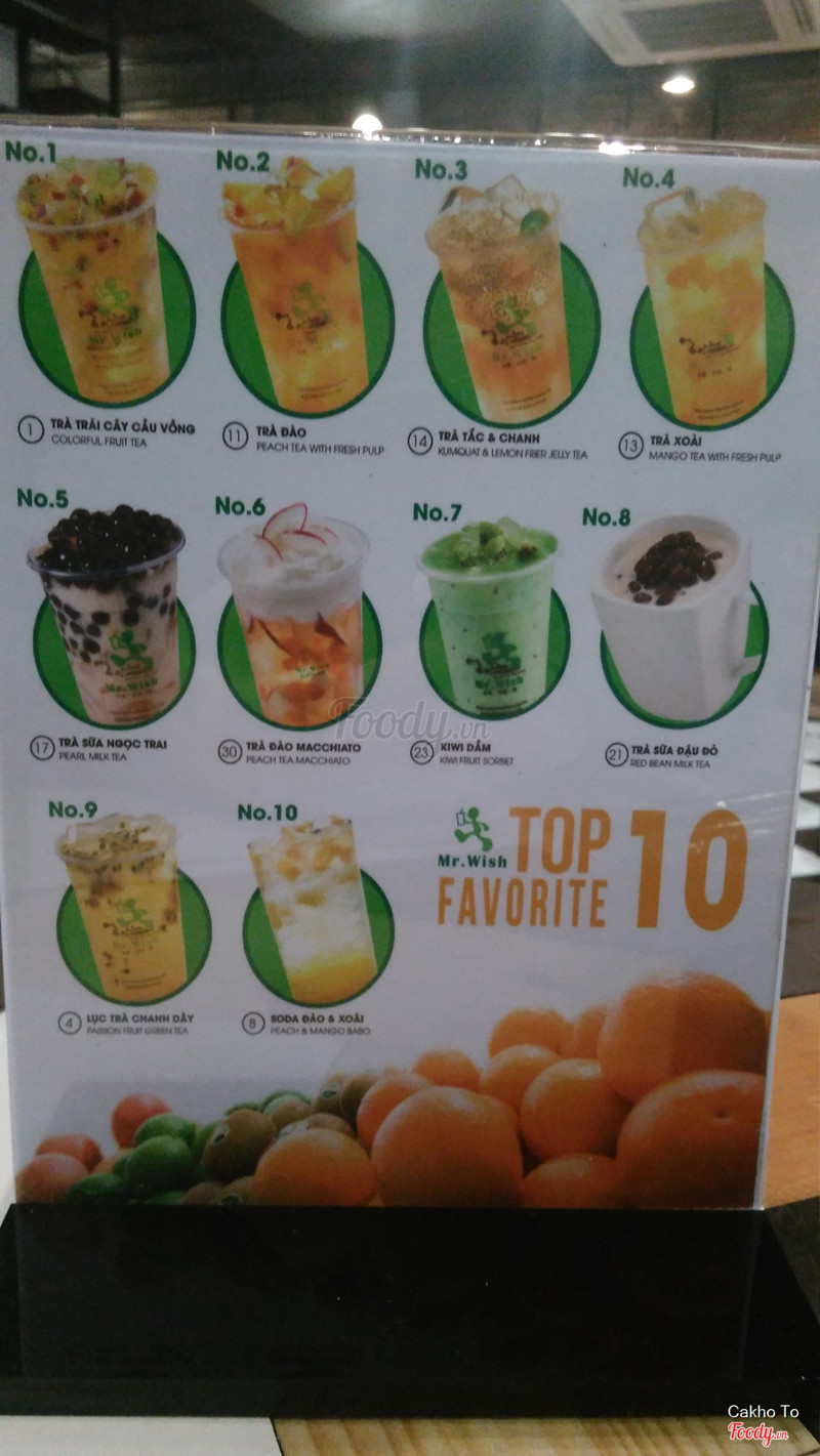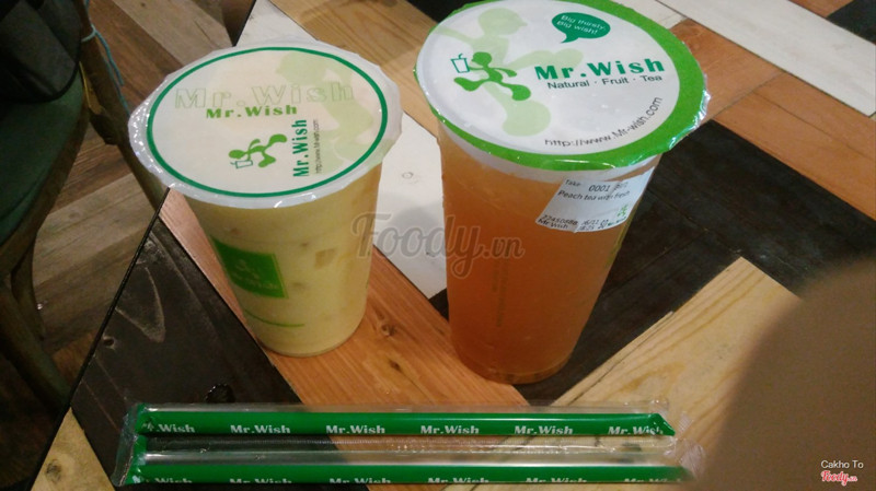 Thủy Trần đã bình luận bằng Android 25/10/2019 18:18:08, 7.2 Trà Trái Cây Mr. Wish - Phan Xích Long Nằm ngay dưới chung cư gần chỗ bệnh viện Hoàn Mỹ. Chỗ giữ xe rộng rãi. Quán khá vắng mình đi vào tối cuối tuần cũng có vài bàn khách thôi. Nhân viên: phục vụ nhanh và dễ thương. Menu đa dạng đủ các thể loại từ trà trái cây, trà sữa đến đá xay. Giá cũng ngang với các brand khác. Mình khá thích trà macchiato bên đây. Lớp kem macchiato ngon. Trà xoài macchiato nên thử nha. Chua ngọt vừa phải. Kiwi đá xay theo mình không ngon lắm. Trà sữa cacao không nên giảm đường. Mình lỡ giảm 50 nhạt lắm. Trà sữa truyền thống ngon. ...Xem thêm