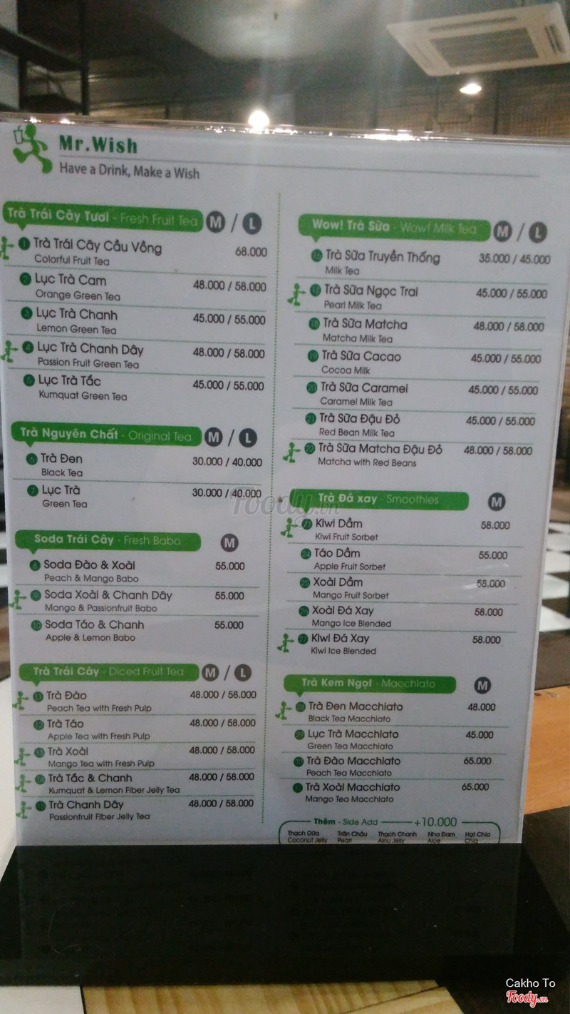 TP. HCM » Quận Phú Nhuận » Khu vực Miếu Nổi - Phan Xích Long Báo lỗi Trà Trái Cây Mr. Wish - Phan Xích Long Café/Dessert - Đài Loan - Cặp đôi, Nhóm hội, Giới văn phòng