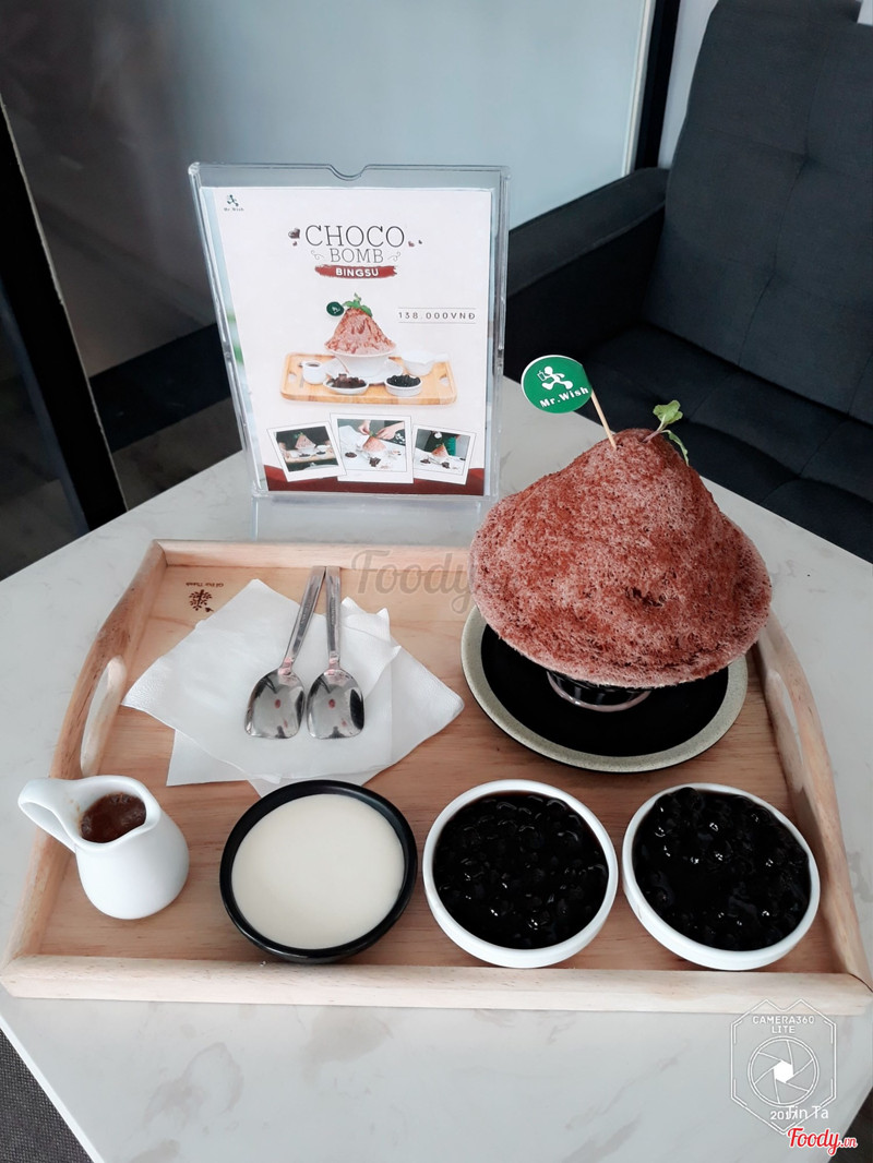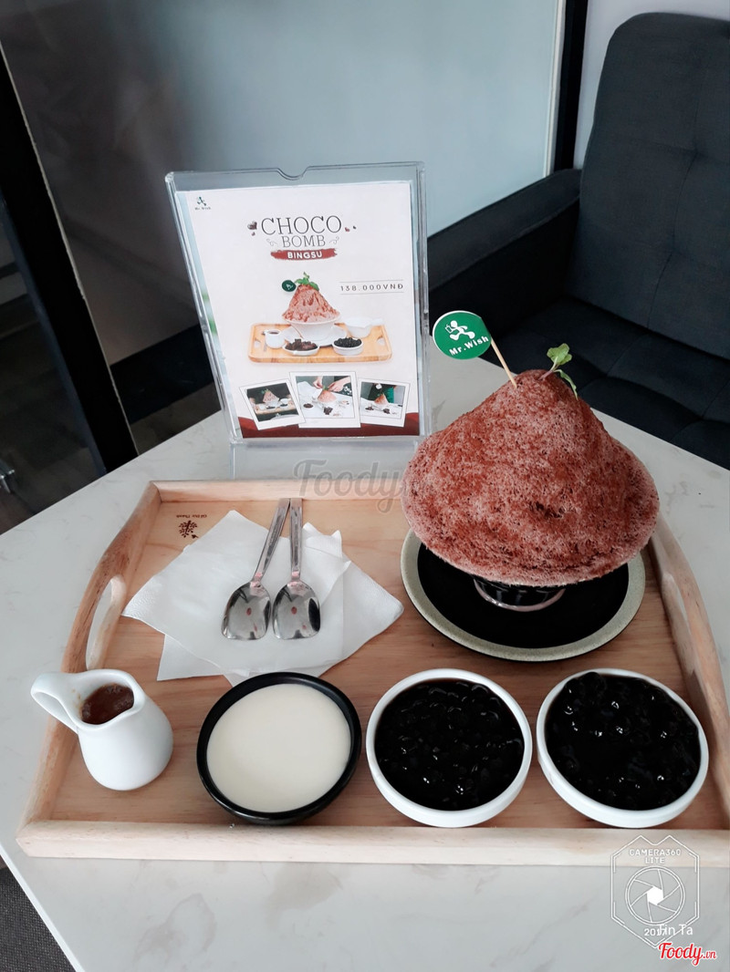 Tin Ta đã bình luận bằng Android 27/06/2020 11:31:02, 7.6 Trà Trái Cây Mr. Wish - Phan Xích Long Món choco bingsu của nhà mr wish thích hợp với thời gian này nắng nóng. Món mang đến sự mới mẻ và cảm nhận sự mât lạnh của đá bào. Tô bing su hấp dẫn lắm. Phần như hình ăn 2 người ăn chứ một người ăn sẽ không hết. Hôm mình đi do bánh ngọt ăn kèm hết nên các bạn có xin phép bù thêm 1 loại topping và bạn mình chọn thêm trân châu đen. Lớp kem cheese rắc đều lên bingsu + trân châu đen ăn nó ngon lắm. Mình không thích sốt ăn kèm vị nó khá lạ. Nhâm viên phục vụ nhanh và vui vẻ. ...Xem thêm