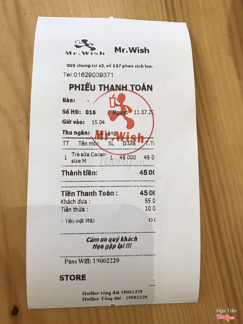 Nga Trần đã bình luận bằng iPhone 11/07/2019 18:10:38, 7.6 Trà Trái Cây Mr. Wish - Phan Xích Long Gửi xe ở chung cư bên cạnh, khi vào quán order nhân viên cũng chủ động hỏi mình có gửi xe ko để đóng dấu mộc free gửi xe. Nên mấy bạn nhớ giữ lại cái bill nha. Không gian đẹp sáng sủa, yên tĩnh, có nhiều ổ cắm thuận tiện để mang lap ra làm việc. Mới đầu bật nhạc cũng vừa mà đến chiều tăng lên xíu :)) Mình uống Trà sữa Cacao - 45k size M ổn ko bị ngọt quá. A mình uống Trà thạch dâu đặc biệt 65k ly lớn mà nghe nói là ngọt quá. Quán chưa có thanh toán qua Ví Momo hay Grabpay by Moca. ...Xem thêm