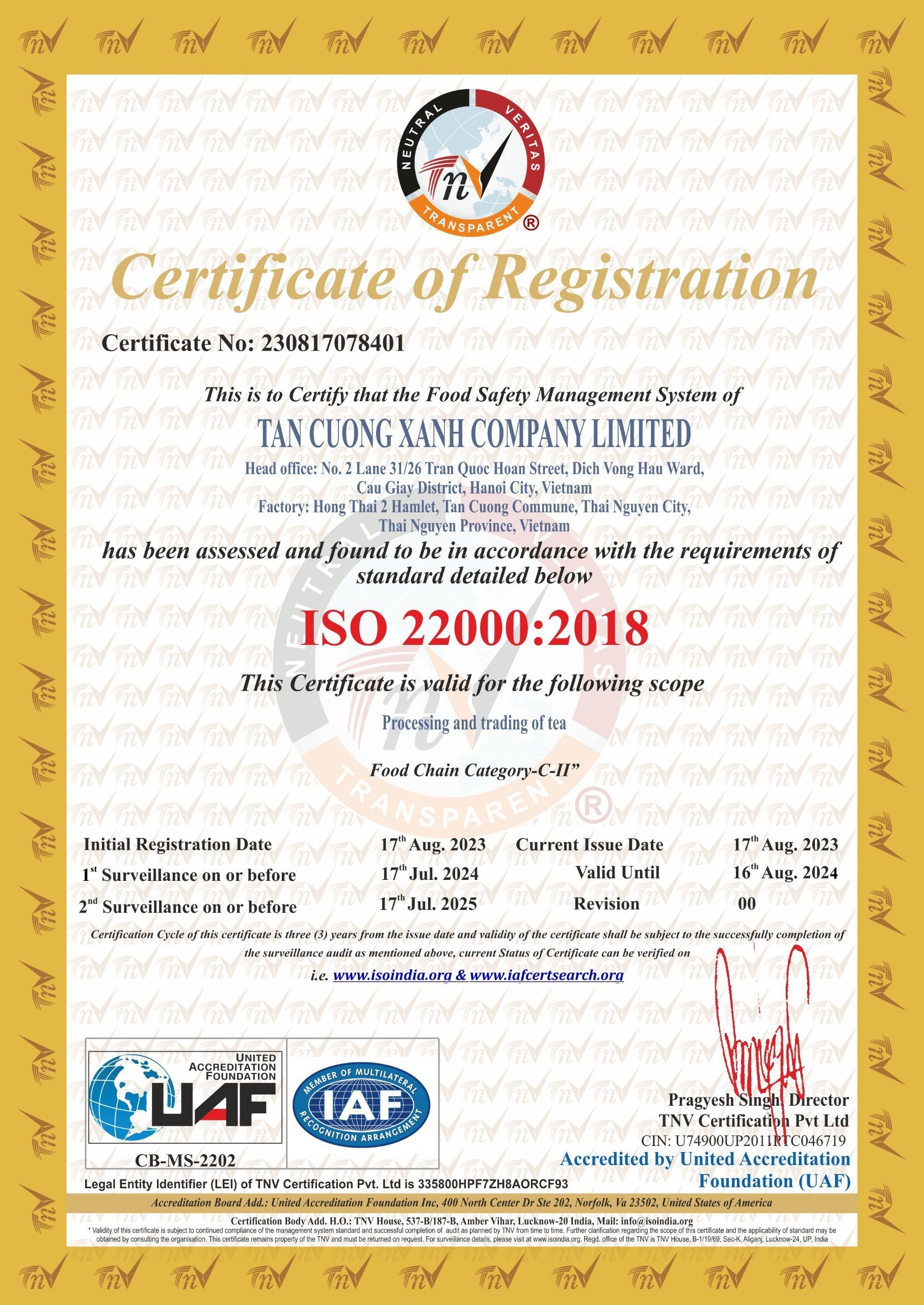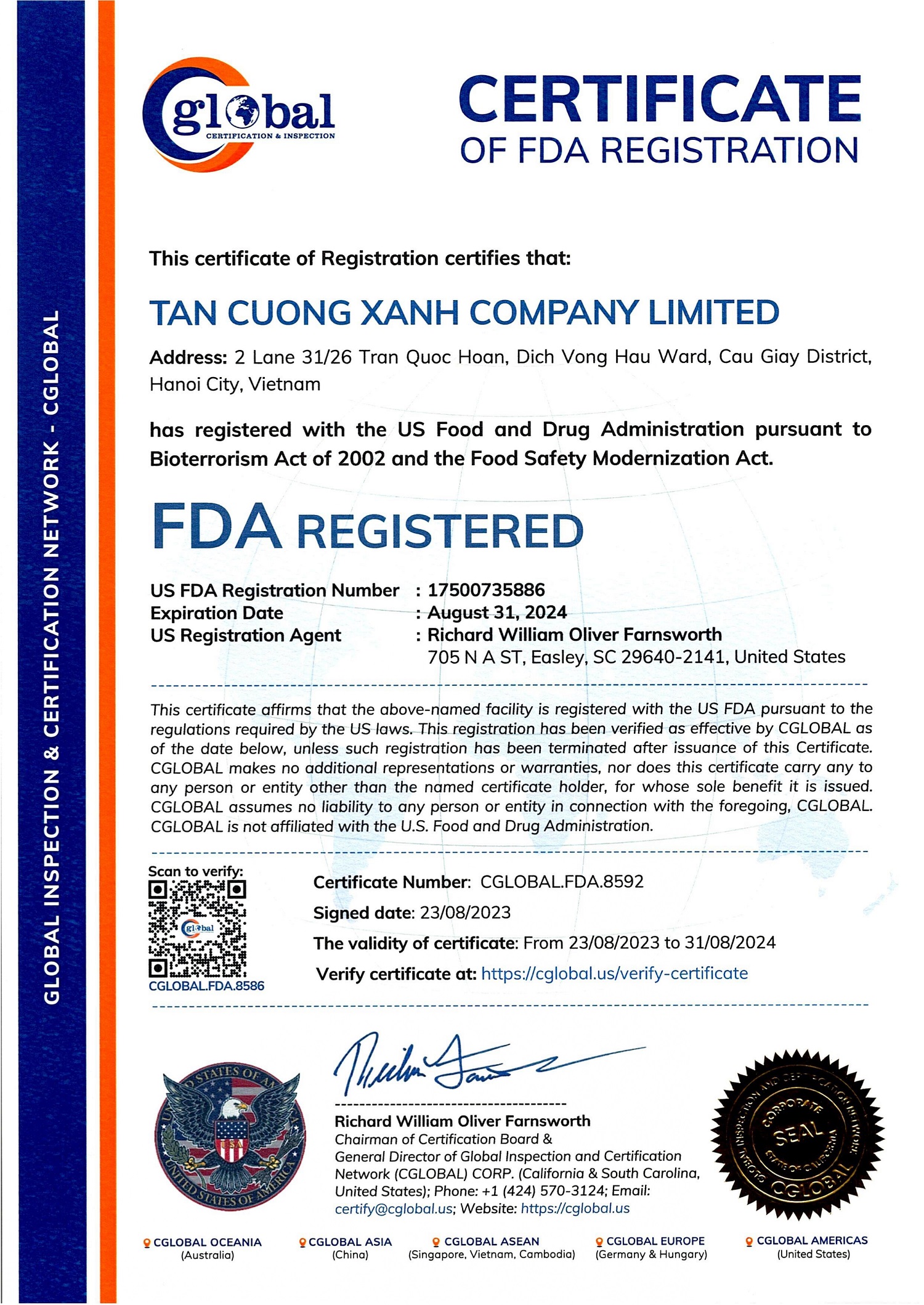Chứng Nhận Vietgap - FDA Hoa Kỳ - ISO 22000