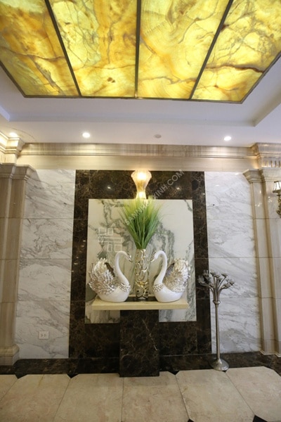 - Nếu gia đình bạn đã có sẵn lát sàn và ốp tường bằng đá, thì ốp trần đá lại càng phù hợp hơn. Sự đồng bộ trong thiết kế trang trí sẽ đem đến hiệu quả thẩm mỹ cao nhất. Bước vào không gian có lát trần vân đá, chắc chắn sẽ khác và ấn tượng hơn nhiều so với không gian không có ốp trần. Thậm chí ốp trần có thể giúp ngôi nhà của bạn như cao và rộng rãi hơn nhiều.