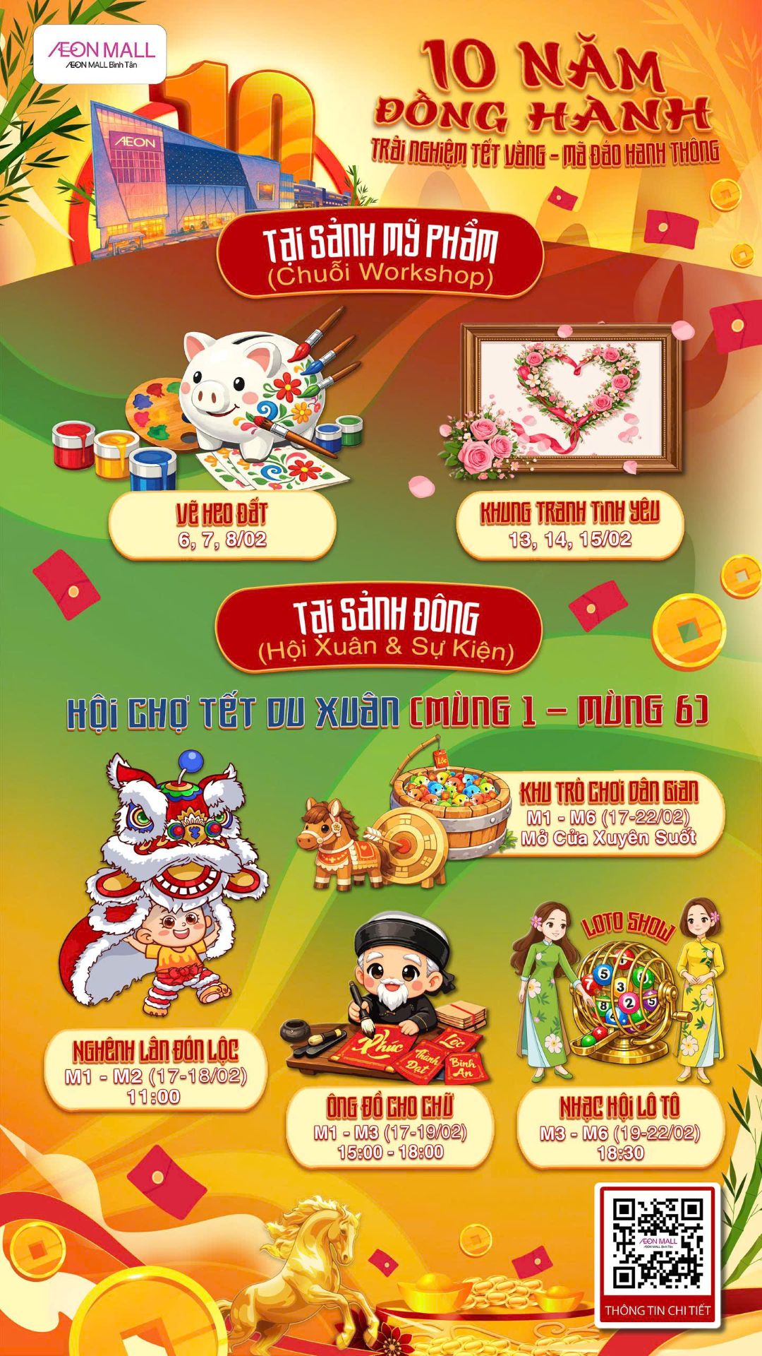 Tết Nguyên Đán 2026 không chỉ là khởi đầu của một năm mới mà còn là dấu mốc vàng son – Kỷ niệm 10 năm AEON MALL Bình Tân đồng hành cùng gia đình Việt. Với chủ đề "Mã Đáo Hanh Thông – Trải Nghiệm Tết Vàng" Chuỗi sự kiện lễ Từ 15/01/2026 đến 15/02/2026Làm Việc Hăng Say - Nhận Ngay Ưu Đãi: Tổng Hợp Ưu Đãi Độc Quyền Cho Nhân Viên Tại AEON MALL Bình Tân