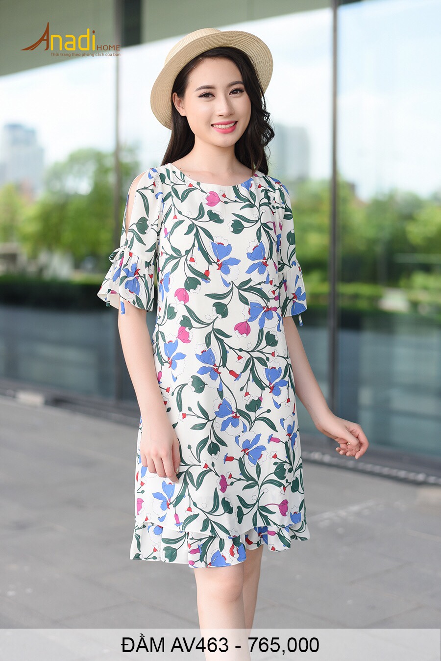 ĐẦM HOẠ TIẾT NGẮN + MŨ CÓI