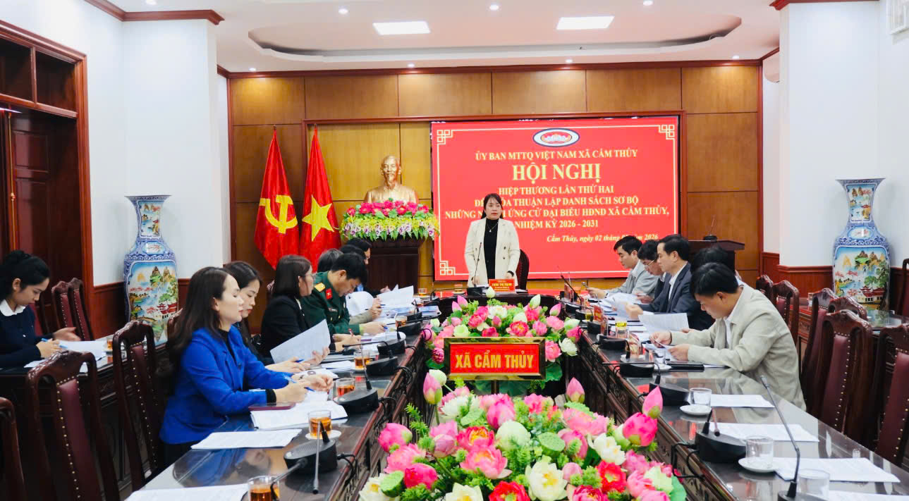 Ban thường trực Uỷ ban MTTQ Việt nam xã Cẩm Thủy tổ chức hội nghị hiệp thương lần 2 Thực hiện quy trình hiệp thương bầu cử đại biểu Quốc hội khóa XV và đại biểu Hội đồng nhân dân các cấp, nhiệm kỳ 2026–2031, chiều ngày 02/02/2026, Ban Thường trực Ủy ban Mặt trận Tổ quốc Việt Nam xã Cẩm Thủy đã tổ chức Hội nghị hiệp thương lần thứ hai nhằm thỏa thuận, lập danh sách sơ bộ những... -