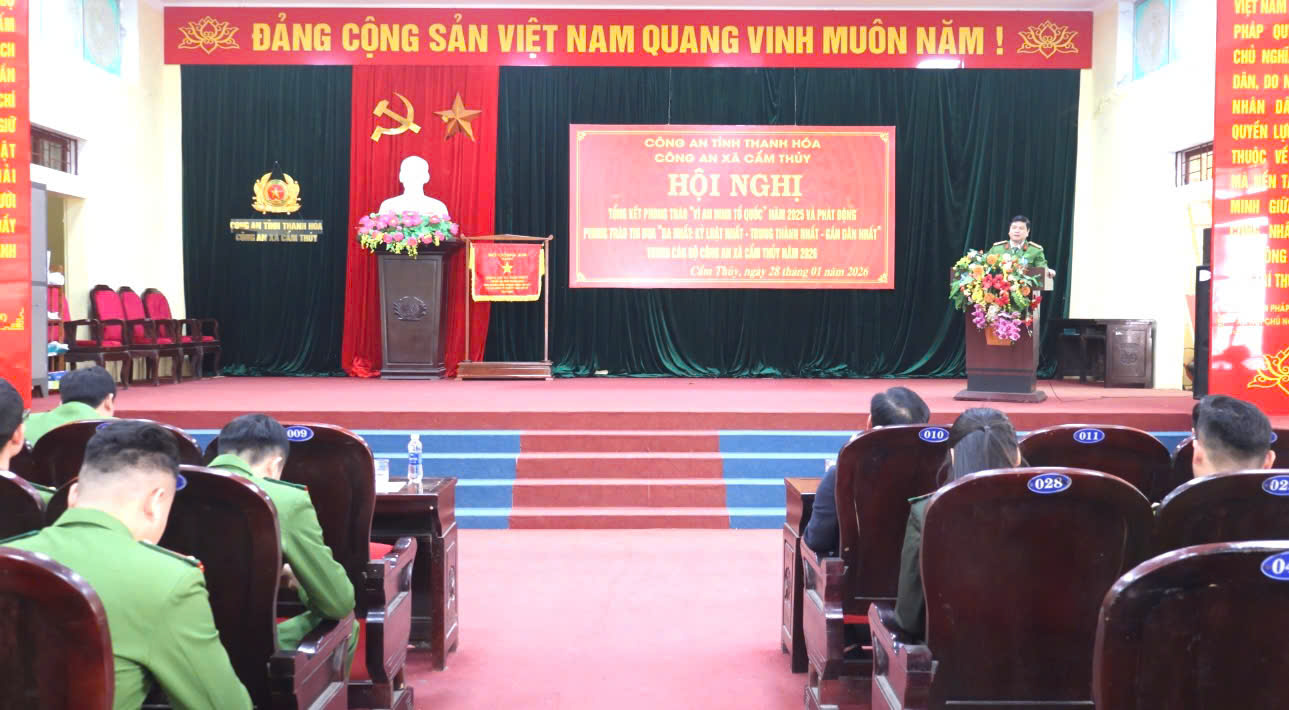 Công an xã Cẩm Thủy tổng kết phong trào thi đua “Vì an ninh Tổ quốc” năm 2025, phát động phong trào... Chiều ngày 28/01, Công an xã Cẩm Thủy tổ chức Hội nghị tổng kết phong trào thi đua “Vì an ninh Tổ quốc” năm 2025 và phát động phong trào thi đua “Ba nhất: Kỷ luật nhất – Trung thành nhất – Gần dân nhất” trong cán bộ, chiến sĩ Công an xã năm 2026. Dự và chỉ đạo hội nghị có đồng chí Nguyễn Tiến Lực –... -