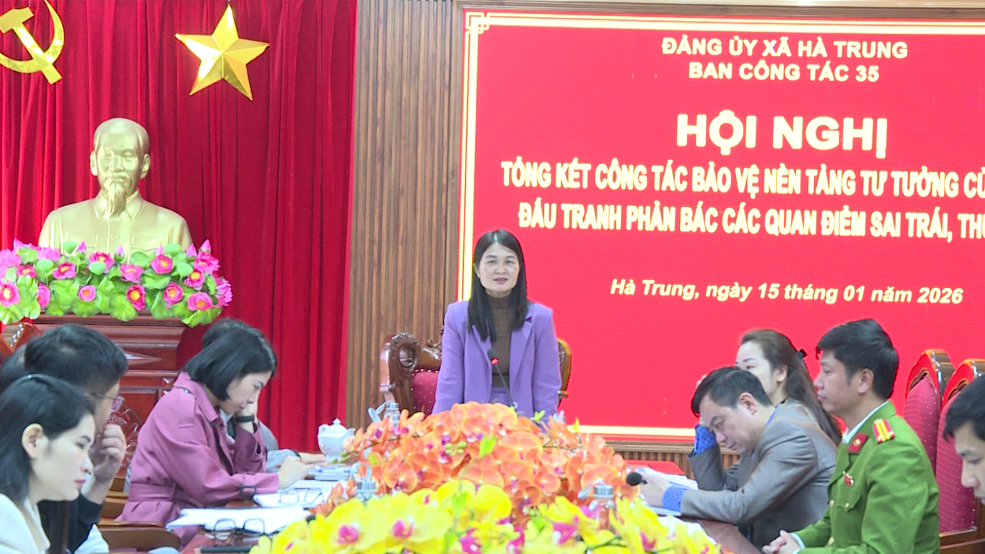 Ban Công tác 35 Đảng ủy xã Hà Trung tổng kết công tác bảo vệ nền tảng tư tưởng của Đảng Sáng ngày 15/1/2026, Ban công tác 35 bảo vệ nền tảng tư tưởng của Đảng, đấu tranh phản bác các quan điểm sai trái, thù địch gọi tắt là: (Ban công tác 35) xã Hà Trung tổ chức Hội nghị tổng kết công tác năm 2025 và triển khai nhiệm vụ trọng tâm năm 2026. - Xã Hà Trung: Tăng cường quản lý đốt dọn thực bì, phòng chống cháy rừng