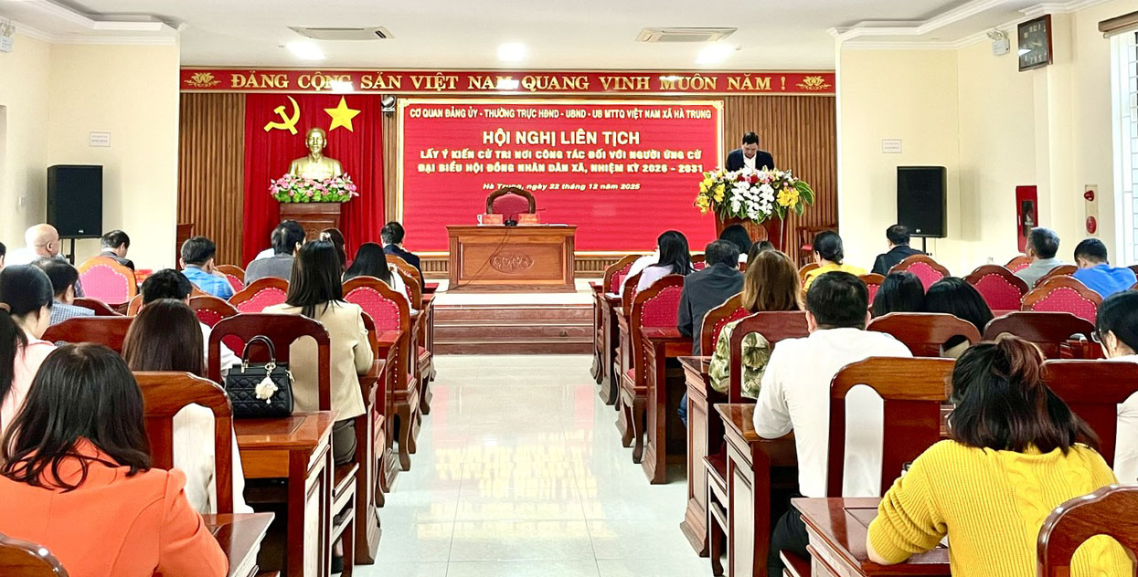 HỘI NGHỊ TIẾP XÚC CỬ TRI GIỮA ĐẠI BIỂU HỘI ĐỒNG NHÂN DÂN XÃ VỚI CỬ TRI CÁC THÔN XÃ HÀ NGỌC, YẾN... Chiều ngày 26/11/2025, tại Hội trường Ban chỉ huy Quân sự xã (HT xã Yến Sơn cũ). Tổ đại biểu Hội đồng nhân dân (HĐND) xã, điểm số 3 đã tổ chức Hội nghị tiếp xúc cử tri giữa đại biểu HĐND xã với cử tri các thôn Thôn Đa Quả 1, 2, Ninh Thôn, Đông Ninh, Tây Ninh, Đường Cát, Phú Nham, Nghè Đỏ ,... - Đại hội Hội Doanh nghiệp xã Hà Trung lần thứ nhất Nhiệm kỳ 2025-2030