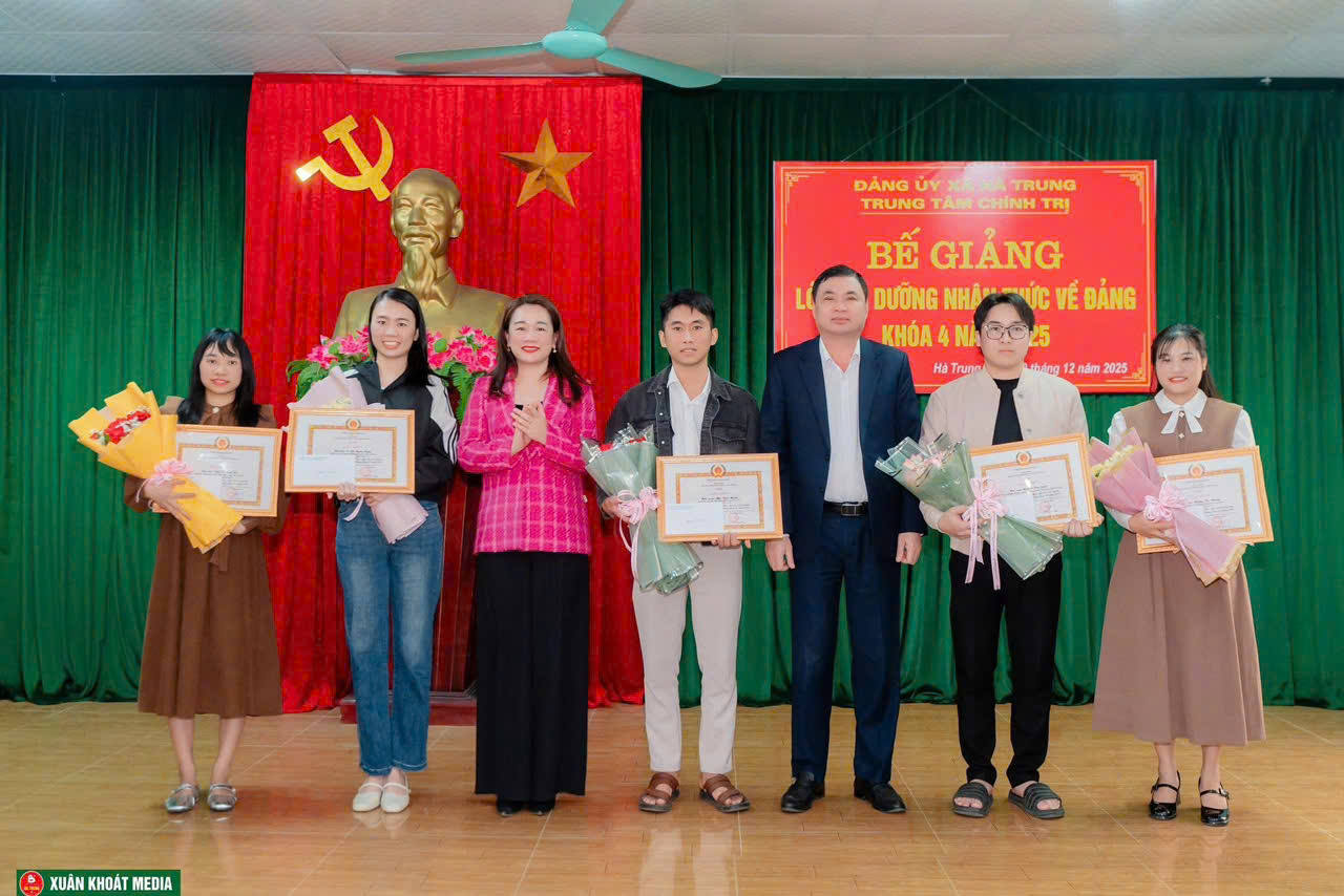 Lễ bế giảng lớp bồi dưỡng kết nạp Đảng khóa IV năm 2025 Chiều ngày 30/12,Trung tâm Chính trị xã Hà Trung tổ chức lễ bế giảng lớp bồi bưỡng kết nạp Đảng khoá 4 năm 2025. - Đồng chí Bí Thư Đảng ủy Lê Văn Dậu tặng Huy hiệu đảng tại nhà cho Đảng viên cao tuổi đảng.