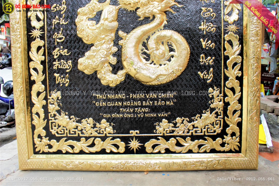 Cơ sở Bảo Long vừa chế tác hoàn thiện đơn đặt hàng Tranh Chữ Phúc Hóa Rồng Phượng 1m67 cho đền Ông Hoàng Bảy. Tranh chữ phúc hóa long phượng cao 1m67 rộng 1m47, khung liền đồng hàng đặt chạm tay thủ công bằng đồng vàng dày 1ly, xương inox khung liền đồng dày dặn, chắc chắn. Chữ Phúc trong từ Ngũ Phúc Lâm Môn (tức là 5 điều phúc gõ cửa vào nhà) hai bên là 2 câu đối "Phúc sinh phú quý gia đình thịnh - Tử hiếu tôn hiền vạn đại vinh". Tranh chữ phúc hóa rồng phượng 1m67 được chuyển về Lào Cai và lắp tại đền ông Hoàng Bảy tại Bảo Hà.