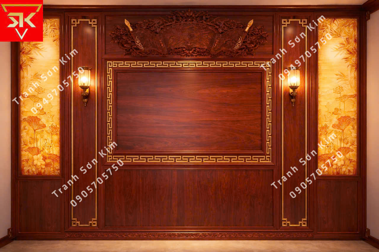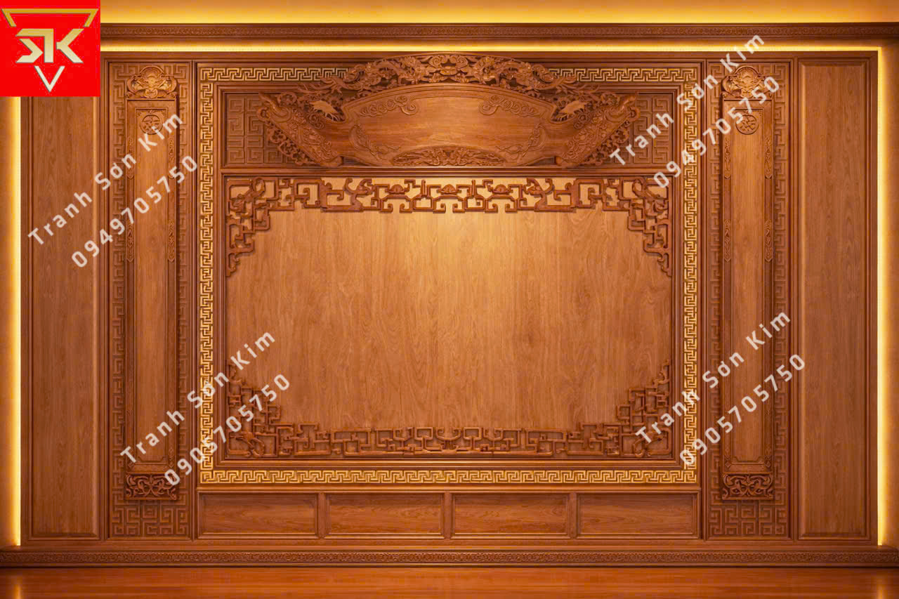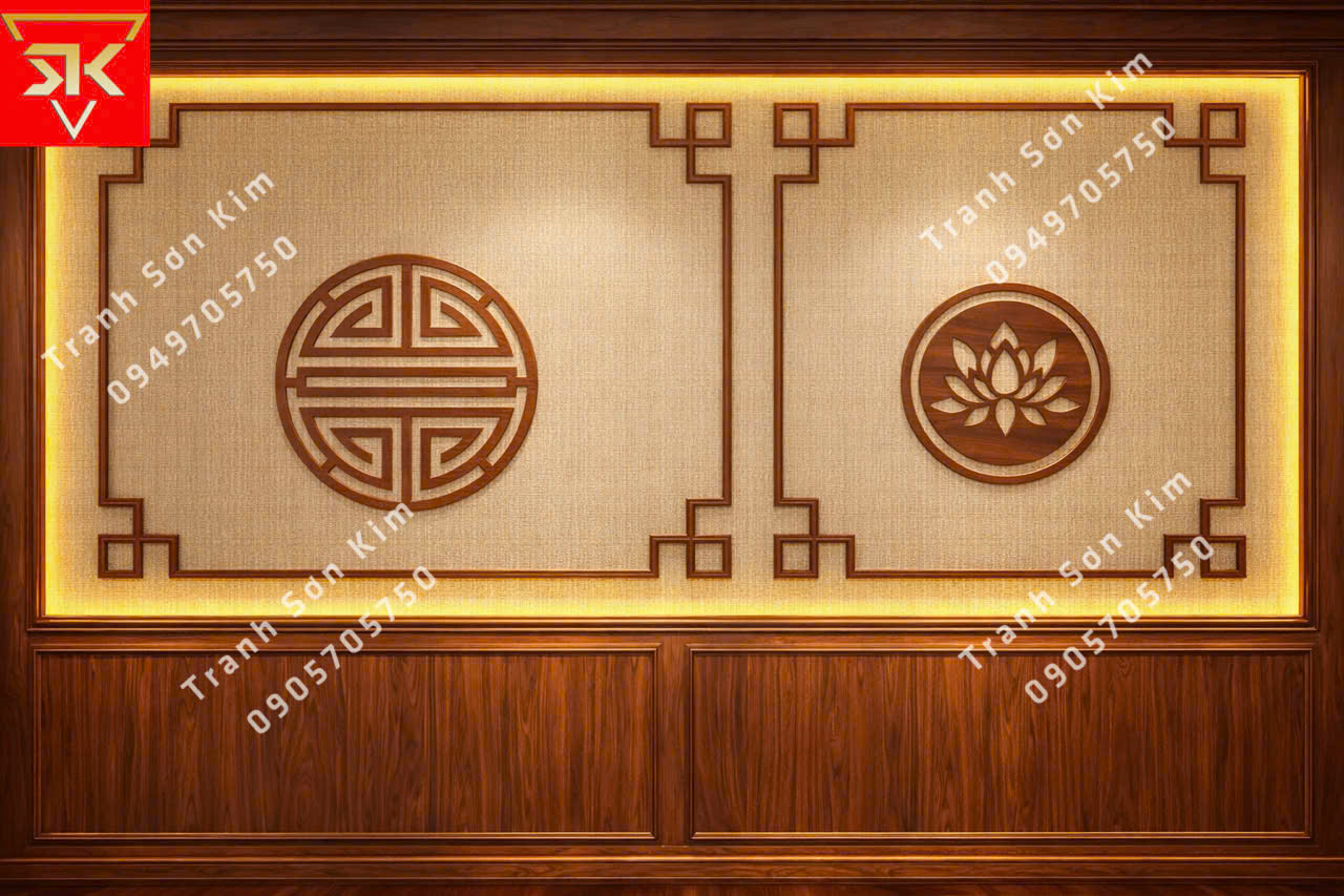 Thi công tranh dán tường chữ phúc điêu khắc gỗ cho phòng thờ nhà biệt thự phố