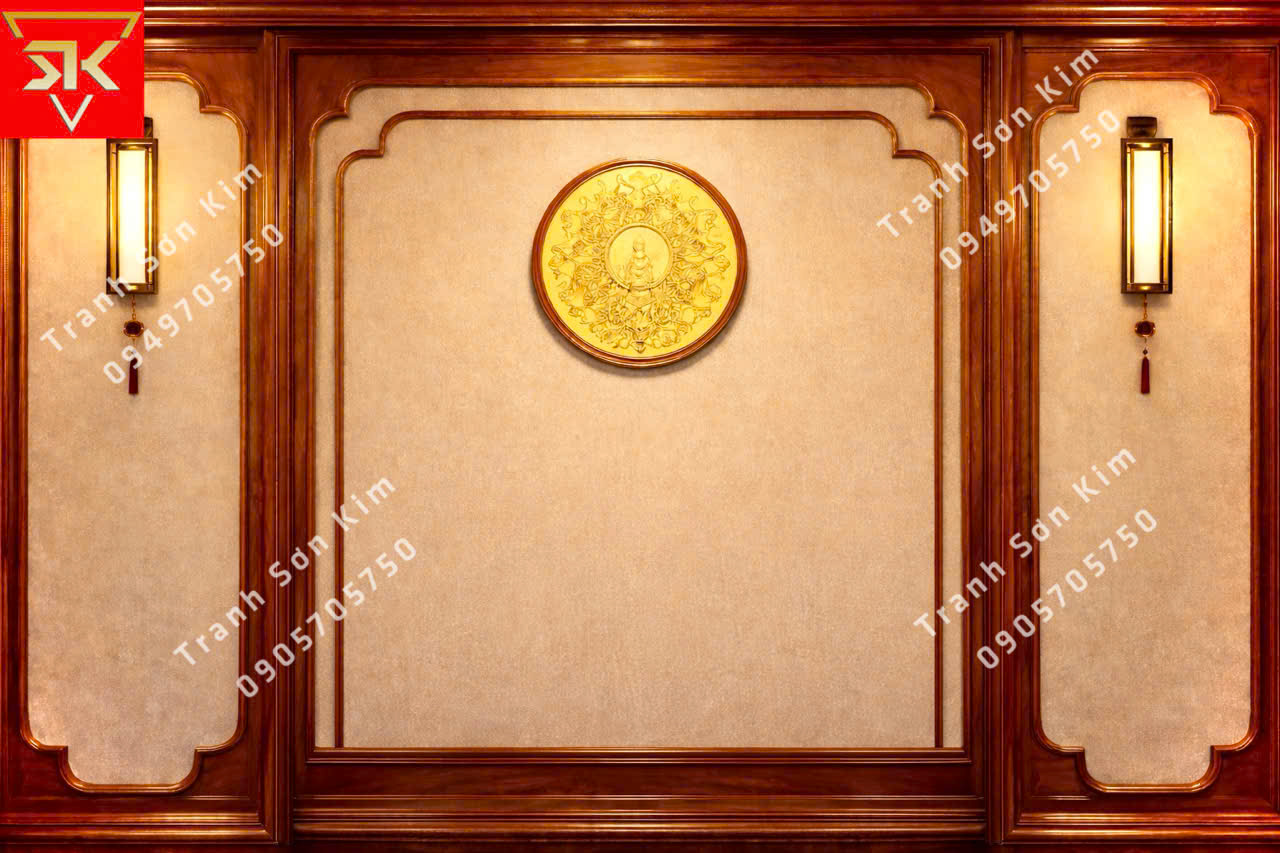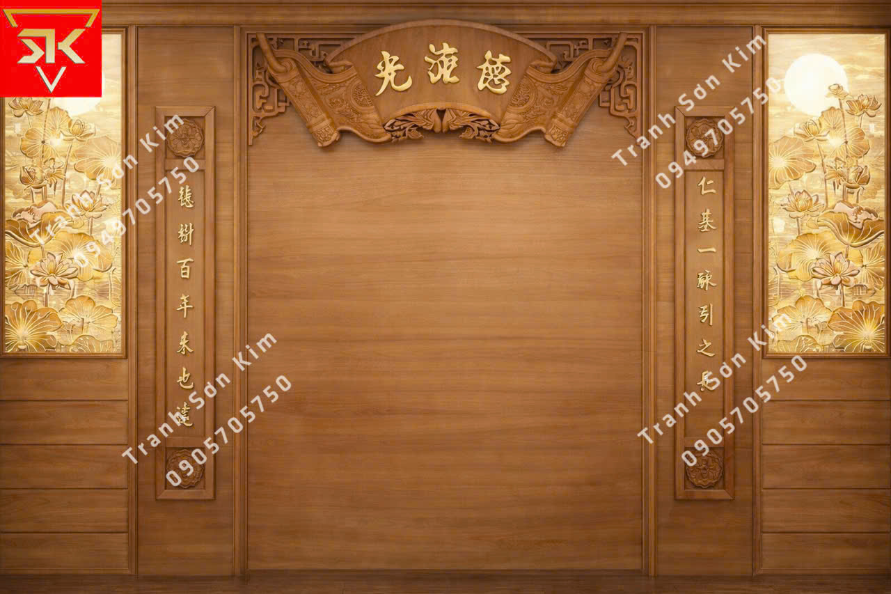 Xem tranh dán tường phòng thờ thiết kế đường nét tinh xảo, mang đậm nét đặc trưng phong cách Trung Hoa cổ điển.