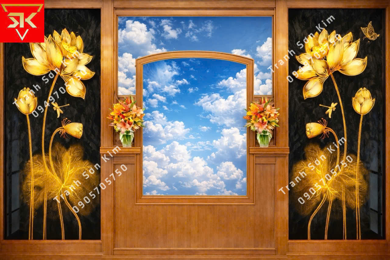 Tham khảo những mẫu tranh dán tường 3D cho phòng thờ dưới đây của Tranh dán tường Sơn Kim để cảm nhận được hết nét đẹp tuyệt vời về tranh 3D nơi đây nhé!