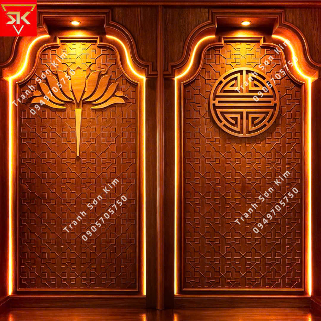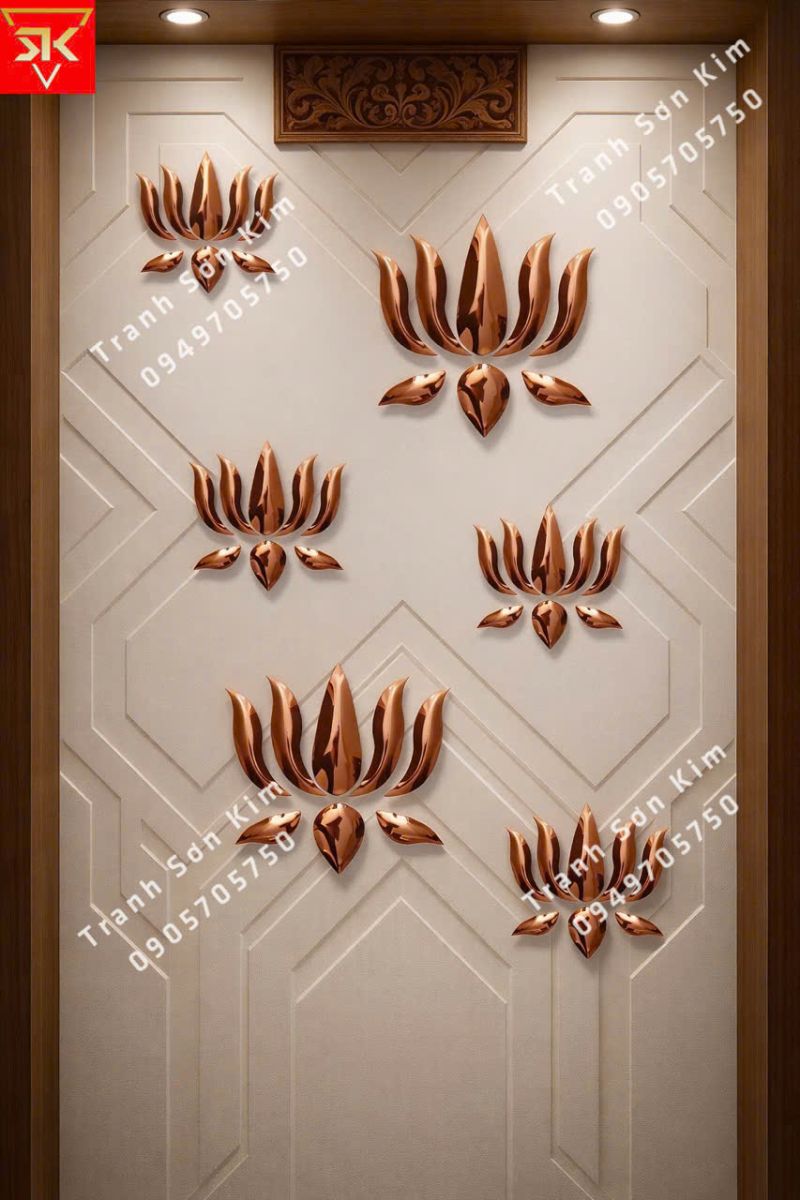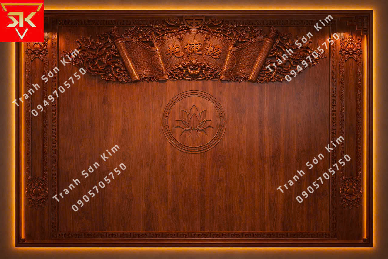 Thi công tranh dán tường điêu khắc hoa sen cho phòng thờ