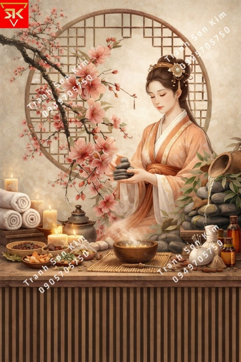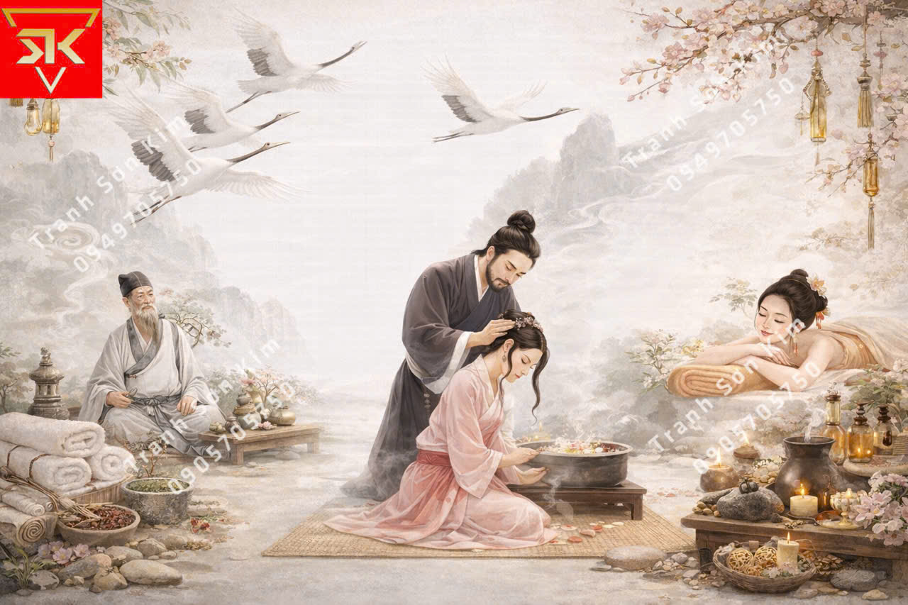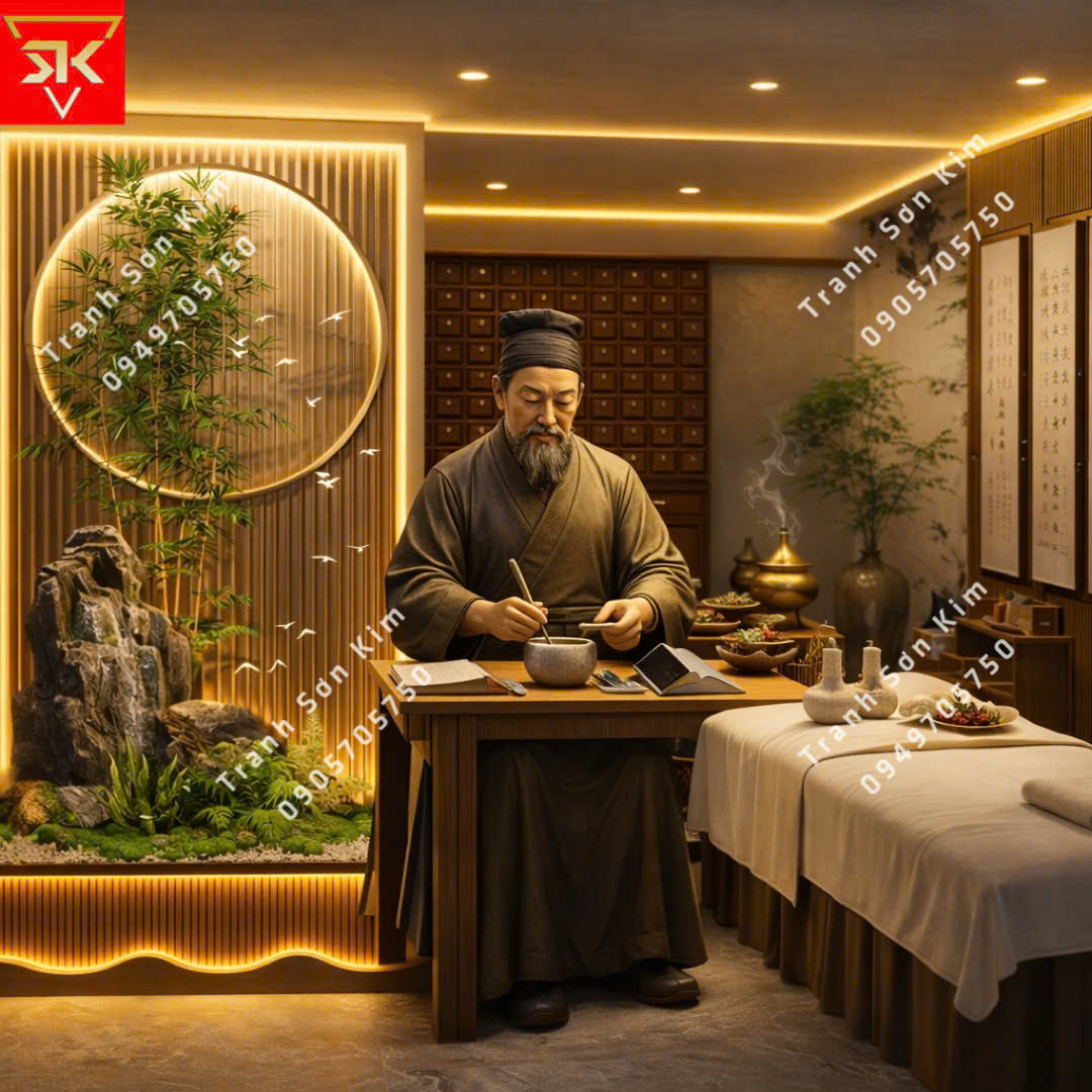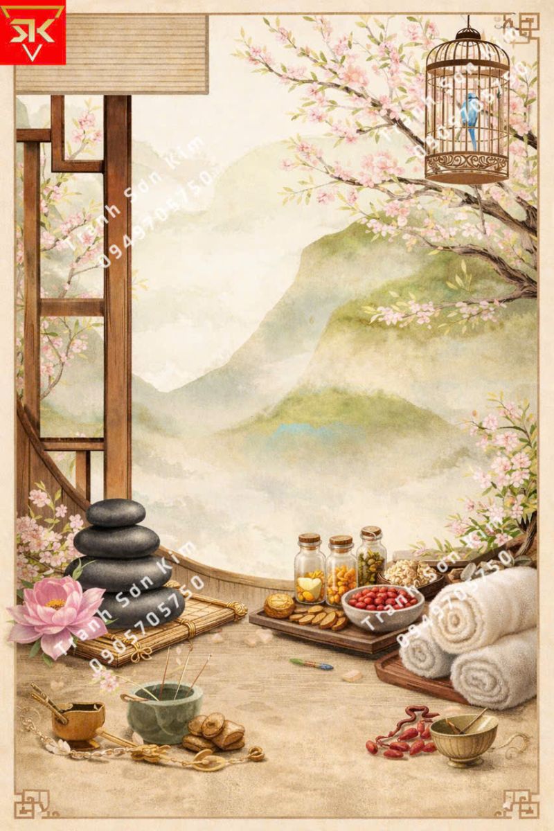 Tranh dán tường spa dưỡng sinh đông y đẹp