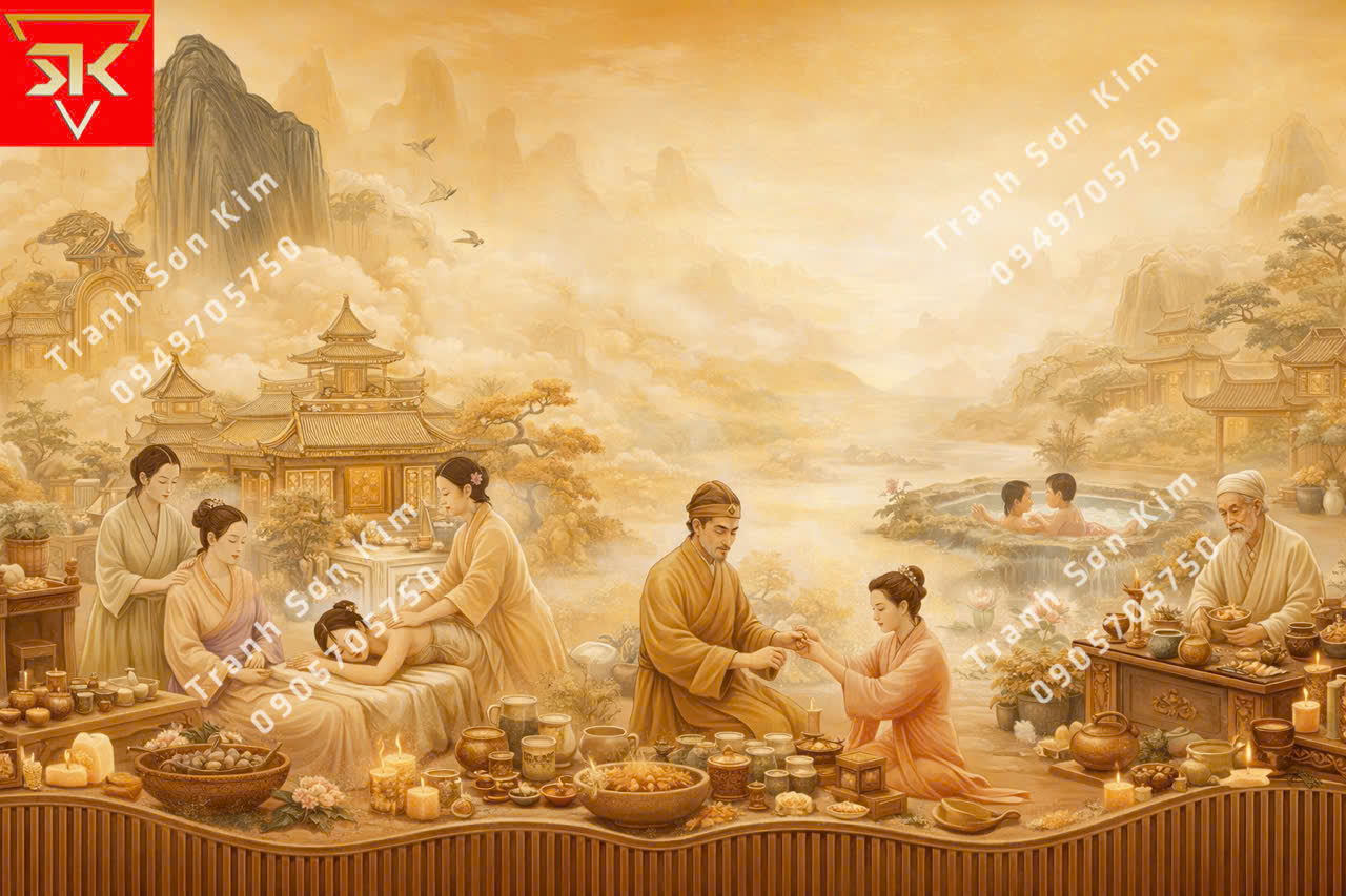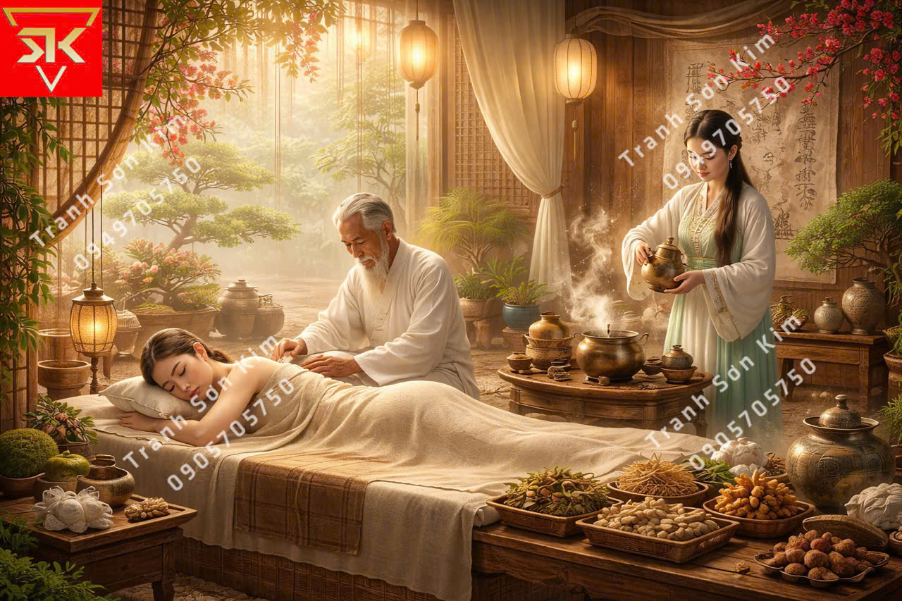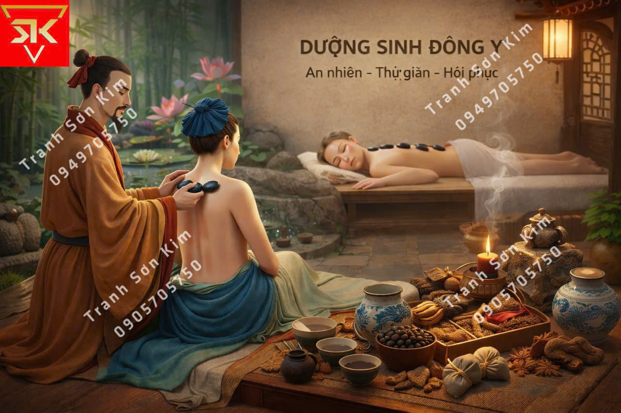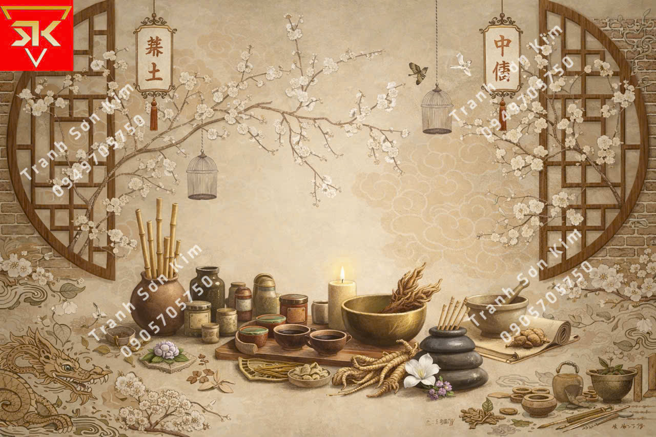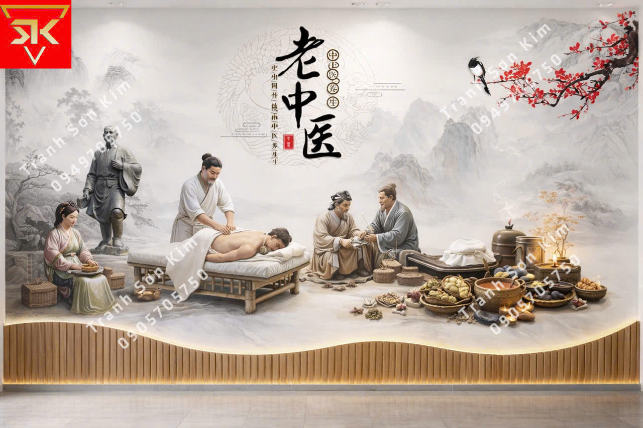 Tranh dán tường spa dưỡng sinh đông y đẹp