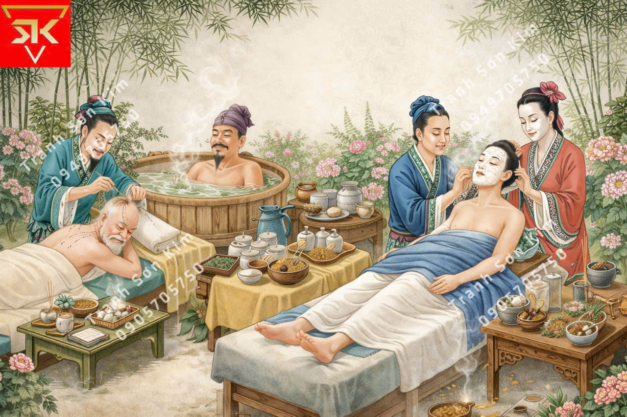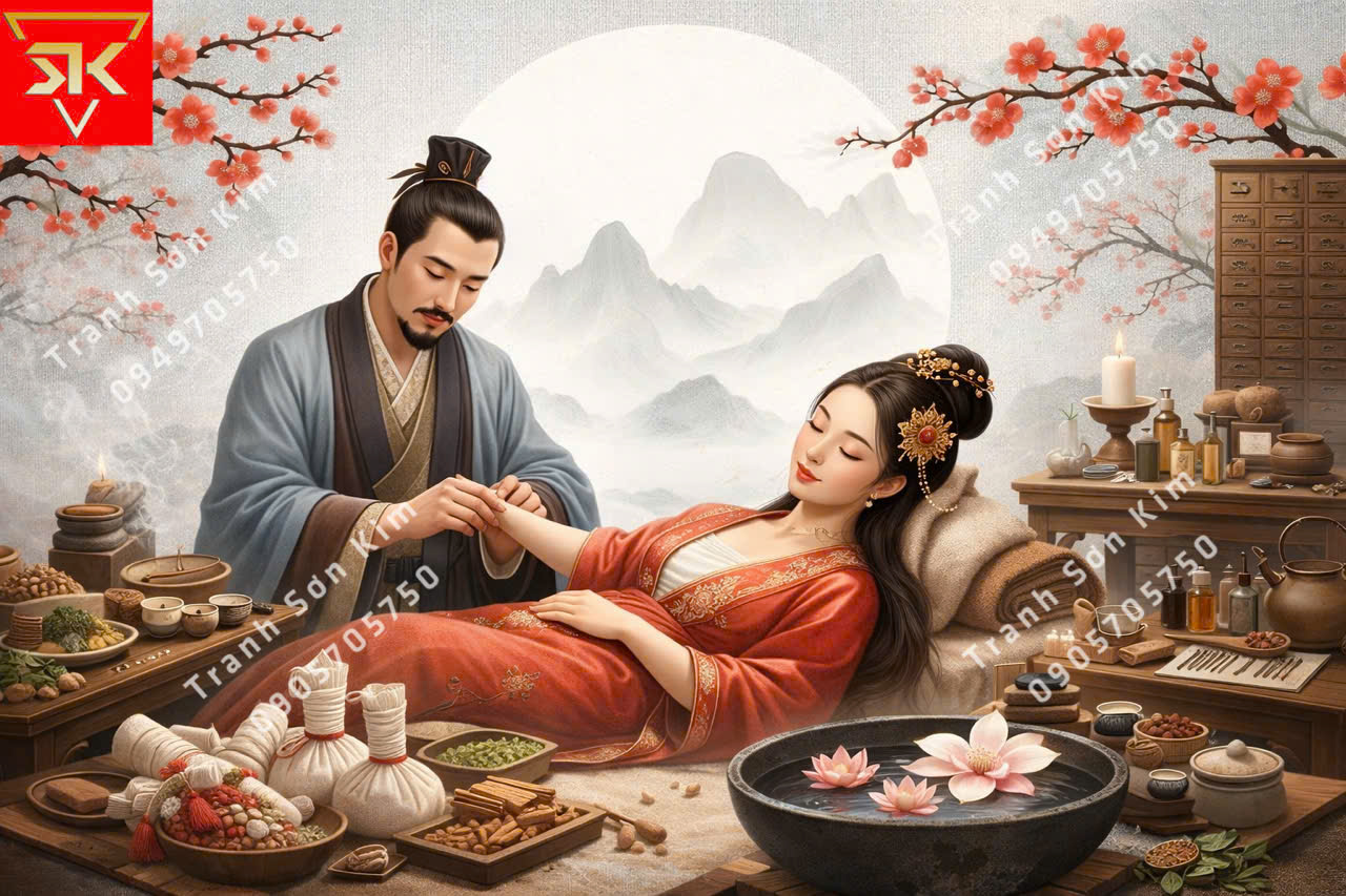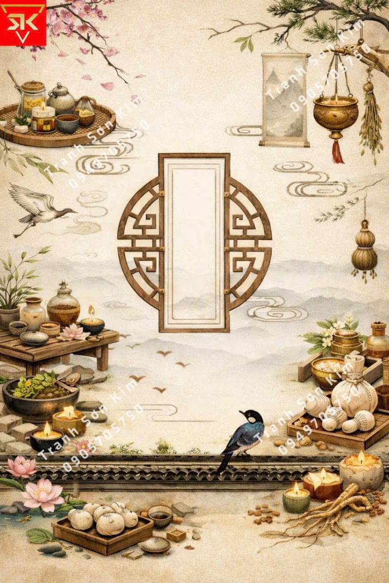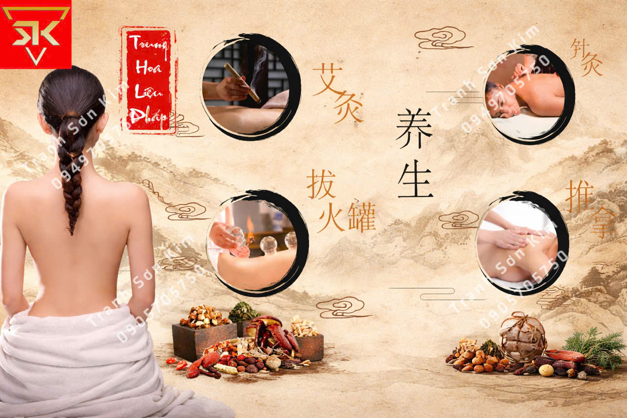 Tranh dán tường spa dưỡng sinh đông y đẹp