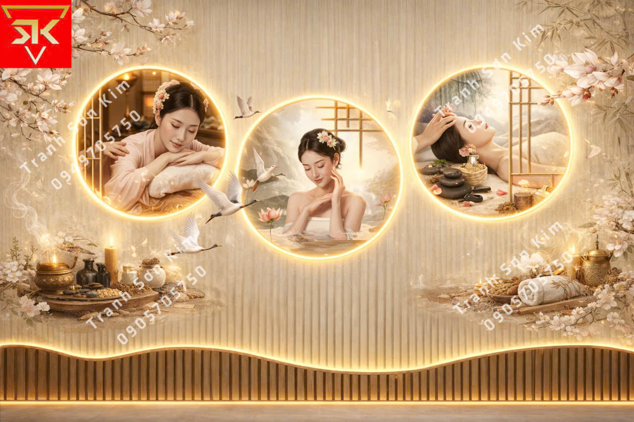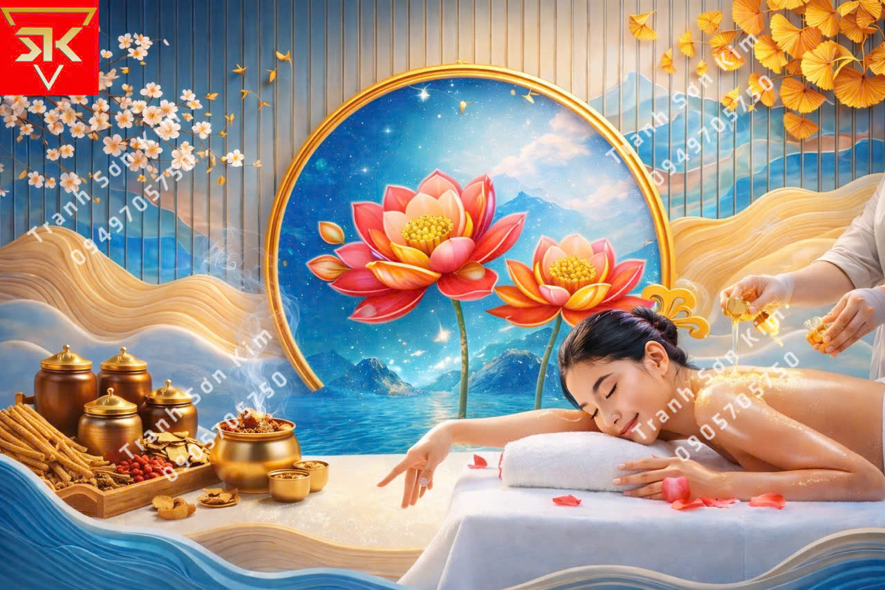 Cùng khám phá bộ sưu tập tranh 3D spa dưỡng sinh Đông y Sơn Kim vừa ra mắt – được thiết kế tinh tế theo từng loại hình trị liệu, hài hòa giữa nghệ thuật và giá trị dưỡng sinh. Mỗi bức tranh mang đến không gian sang trọng, thư giãn và giàu cảm xúc, giúp khách hàng cảm nhận trọn vẹn nguồn năng lượng chữa lành ngay từ khoảnh khắc đầu tiên bước vào spa.