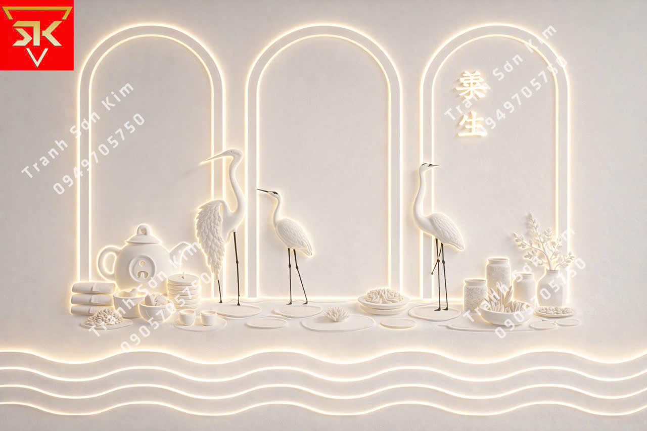 Trong không gian spa nơi mọi giác quan được xoa dịu, bức tranh dán tường chim hạc tung cánh bay về trời không chỉ là điểm nhấn nghệ thuật mà còn là biểu tượng của sự thanh tao, trường thọ và bình an. Được thể hiện bằng đường nét mềm mại trên nền màu sang trọng, đàn hạc như dẫn lối khách bước vào một thế giới khác – nơi không còn mệt mỏi, không còn lo toan… chỉ còn lại sự thảnh thơi, nhẹ nhõm trong tâm hồn.