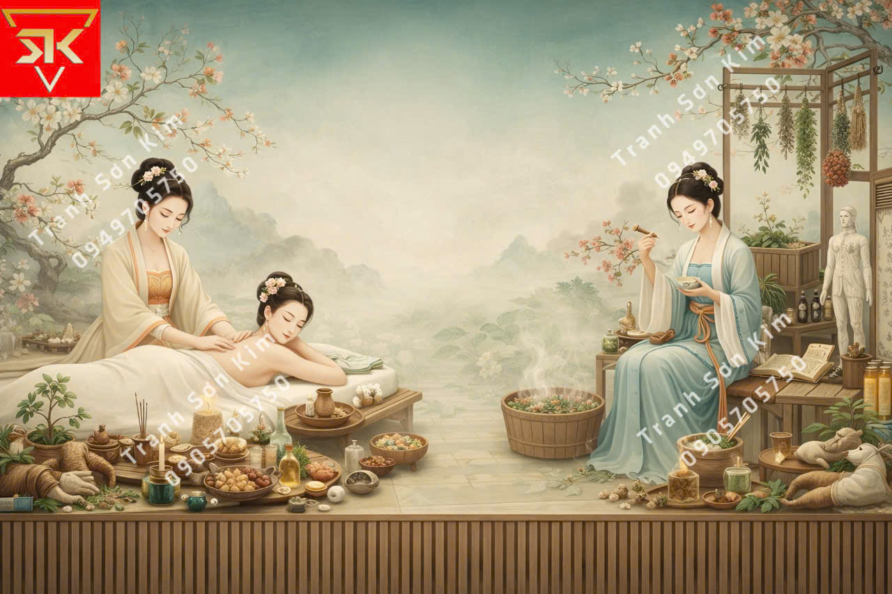 Thi công tranh 3D spa dưỡng sinh thảo dược đông y