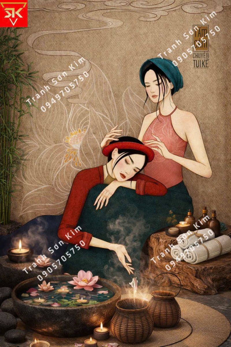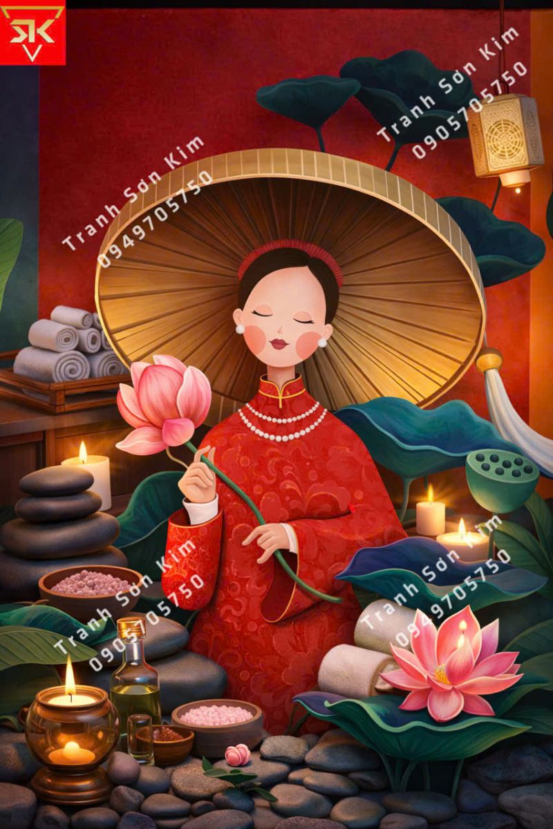 Tranh 3D phong cach indochine tuyệt chiêu trang trí spa