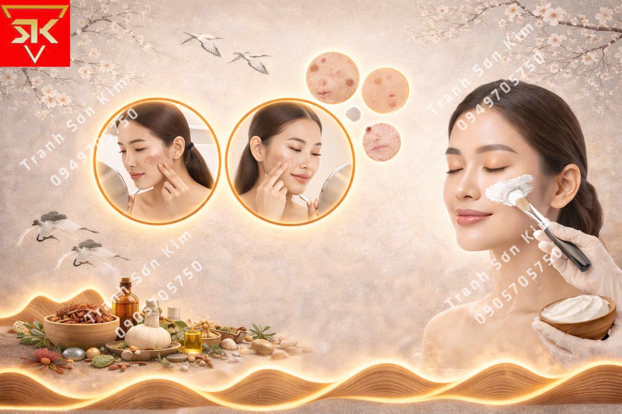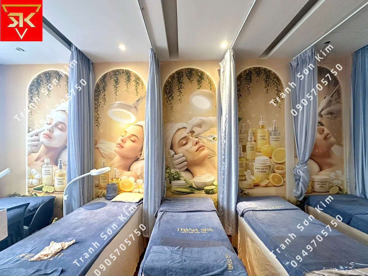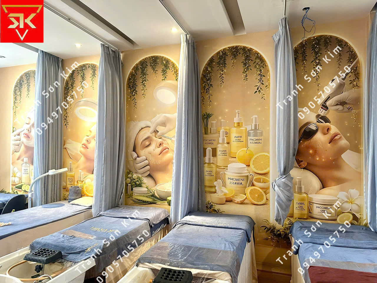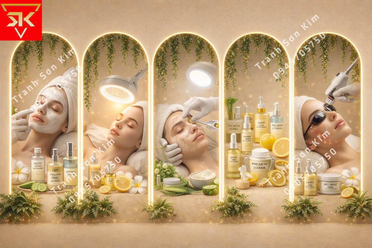 Thi công tranh dán tường spa chuyên trị mụn nám