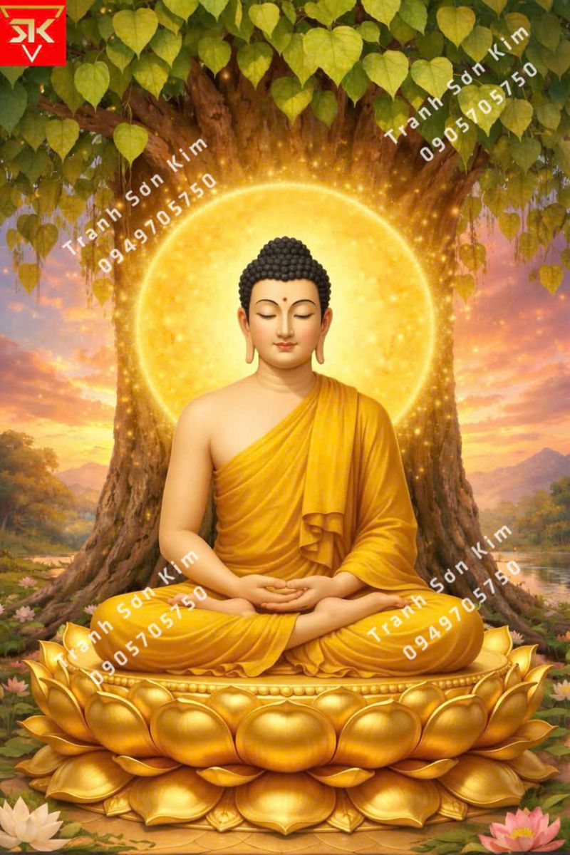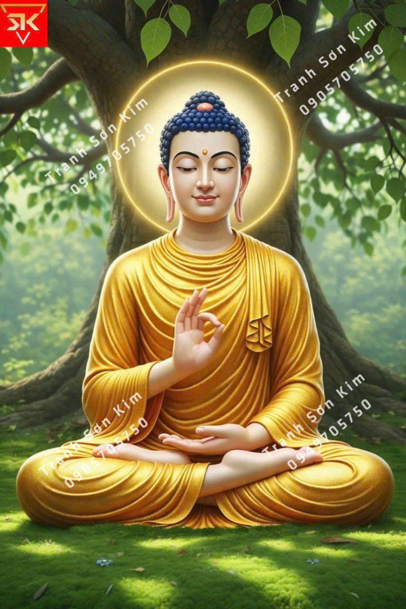 Mẫu tranh Đức Phật ngồi thiền giữa không gian xanh mát, lý tưởng để trang trí phòng thiền, phòng yoga, phòng thờ hoặc góc tịnh tâm, giúp thanh lọc tâm trí, giảm căng thẳng và mang lại cảm giác an yên cho gia chủ mỗi khi bước vào.