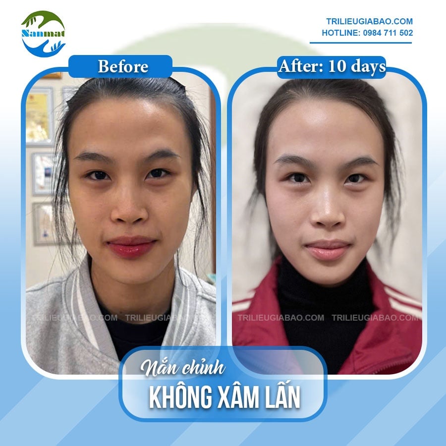 Trước khi nắn chỉnhMs.Cẩm Vân (sn 2007) gặp phải tình trạng lệch mặt rất nghiêm trọng: Trục mặt lệch, miệng lệch, hàm lệch, há miệng đau mỏi và có tiếng kêu.Qua tìm hiểu khắp nơi, bạn bắt gặp các video nắn chỉnh của Y thuật Trị liệu Gia Bảo trên Tiktok. Bạn đã xem xét, hỏi thăm và nhận được tư vấn từ người thân, bạn bè, chuyên gia. Bạn quyết định đăng ký lộ trình nắn chỉnh 10 buổi do tư vấn từ chuyên gia và bạn cũng tự nhận thấy khuôn mặt mình lệch khá nặng.Dưới đây là hình ảnh chụp chính diện khuôn mặt bất cân đối của bạn:Ảnh trước khi nắn mặt lệch: ảnh chụp chính diệnẢnh trước khi nắn mặt lệch: ảnh chụp chính diệnẢnh trước khi nắn mặt lệch: ảnh chụp chính diệnNhật ký nắn chỉnh mặt lệchDo đã tìm hiểu khá kỹ các bài viết trên các công cụ truyền thông của Trị Liệu Gia Bảo nên việc tư vấn, giải đáp các thông tin liên quan nắn mặt lệch diễn ra khá nhanh chóng và dễ dàng. Việc phối hợp với Trị liệu viên trong các quá trình trị liệu cũng khá nhịp nhàng, hiệu quả. Bạn cùng theo dõi tiến trình nắn chỉnh của bạn nữ nhé:Ảnh chụp sự thay đổi của Ms.Vân sau 01 buổi nắn chỉnh mặt lệchẢnh chụp sự thay đổi của Ms.Vân sau 02 buổi nắn chỉnh mặt lệchẢnh chụp sự thay đổi của Ms.Vân sau 03 buổi nắn chỉnh mặt lệchẢnh chụp sự thay đổi của Ms.Vân sau 04 buổi nắn chỉnh mặt lệchẢnh chụp sự thay đổi của Ms.Vân sau 05 buổi nắn chỉnh mặt lệchẢnh chụp sự thay đổi của Ms.Vân sau 06 buổi nắn chỉnh mặt lệchẢnh chụp sự thay đổi của Ms.Vân sau 07 buổi nắn chỉnh mặt lệchẢnh chụp sự thay đổi của Ms.Vân sau 08 buổi nắn chỉnh mặt lệchẢnh chụp sự thay đổi của Ms.Vân sau 09 buổi nắn chỉnh mặt lệchẢnh chụp sự thay đổi của Ms.Vân sau 10 buổi nắn chỉnh mặt lệchVậy là lộ trình 10 buổi nắn chỉnh của Ms.Vân đã khép lại, 1 hành trình, 1 diện mạo mới. Khuôn mặt bạn nữ không chỉ cân đối, hài hòa hơn, mà còn xinh đẹp, thon gọn hơn rất nhiều. Bạn đã cảm thấy tự tin hơn nhiều với khuôn mặt này. Tuy nhiên, bạn vẫn nên thỉnh thoảng tập lại các bài tập trước đó chuyên gia đã hướng dẫn và tuyệt đối không lặp lại các thói quen xấu để khuôn mặt không biến dạng. lệch lạc lại nhé!!!
