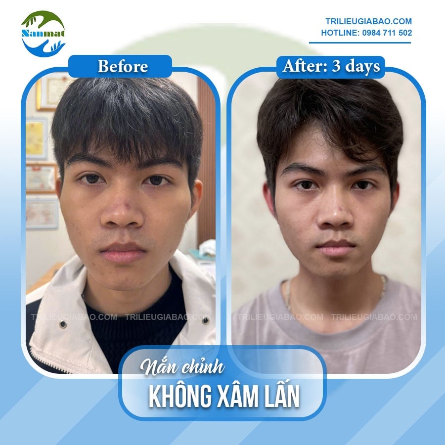 Trước khi nắn chỉnhMr.Sơn (sn 2004) điều trị mặt lệch lộ trình 3 buổi nắn chỉnh. Trước nắn chỉnh, khuôn mặt bạn gặp các vấn đề: hàm, miệng, mũi đều mất cân đối, há miệng đau mỏi. Bạn đã tìm hiểu qua các nền tảng và biết tới Y thuật Trị liệu Gia Bảo qua Tiktok. Bạn đã liên hệ và tới phòng trị liệu để nắn chỉnh.Tại đây, bạn được tư vấn nhiệt tình và nắn chỉnh đúng phương pháp, mà vừa an toàn, vừa hiệu quả. Sau 3 buổi, khuôn mặt bạn đã tiến triển thấy rõ, bạn không còn tự ti như trước nữa vì giờ khuôn mặt của bạn đã hoàn thiện hơn rất nhiều.Dưới đây là hình ảnh chụp chính diện khuôn mặt:Ảnh trước khi nắn mặt lệch: ảnh chụp chính diệnẢnh trước khi nắn mặt lệch: ảnh chụp chính diệnẢnh trước khi nắn mặt lệch: ảnh chụp chính diệnNhật ký nắn chỉnh mặt lệchDo đã tìm hiểu khá kỹ các bài viết trên các công cụ truyền thông của Trị Liệu Gia Bảo nên việc tư vấn, giải đáp các thông tin liên quan nắn mặt lệch diễn ra khá nhanh chóng và dễ dàng. Việc phối hợp với Trị liệu viên trong các quá trình trị liệu cũng khá nhịp nhàng, hiệu quả. Bạn cùng theo dõi tiến trình nắn chỉnh của Sơn nhé:Ảnh chụp sự thay đổi của Mr.Sơn sau 01 buổi nắn chỉnh mặt lệchẢnh chụp sự thay đổi của Mr.Sơn sau 02 buổi nắn chỉnh mặt lệchẢnh chụp sự thay đổi của Mr.Sơn sau 03 buổi nắn chỉnh mặt lệchLộ trình 3 buổi nắn chỉnh kết thúc, khuôn mặt bạn cân đối, hài hòa hơn, há miệng đã không còn đau nhức, khó chịu nữa. Nếu không nhận ra và đến nắn chỉnh sớm, không biết bao giờ bạn mới có thể tự tin, thoải mái hơn.Thế nhưng, bạn tuyệt đối không được chủ quan với các tác nhân gây mặt lệch vì nó có thể tiềm tàng, lâu dần khiến khuôn mặt lệch trở lại. Bạn cũng thế, bỏ ngay các thói quen không lành mạnh như chống cằm, nhai 1 bên, nằm sấp... để không bị lệch mặt nhé. Nếu bị rồi, bạn liên hệ để nhận tư vấn miễn phí nhé (hotline/Zalo: 0984 711 502).