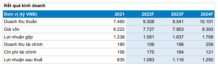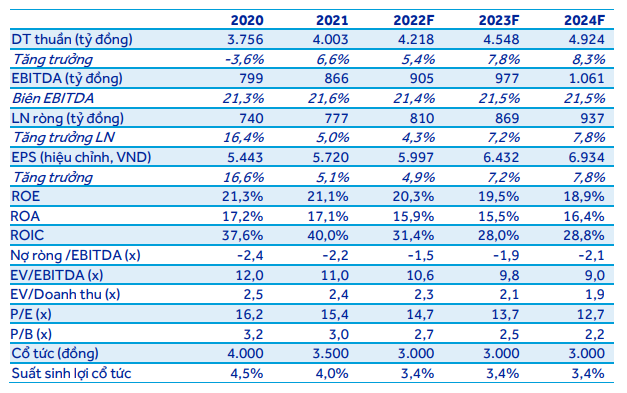 ACBS dự phóng tăng trưởng doanh thu của công ty ở mức 5.4% trong năm 2022, trong đó doanh thu thành phẩm có thể tăng 7.8%. Lãi trước thuế dự phóng là 903 tỷ đồng (tăng 4.5%).