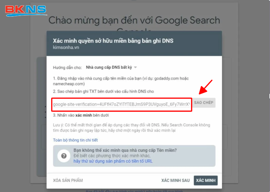Bước 2: Xác minh quyền sở hữu tên miền với Google Search Console