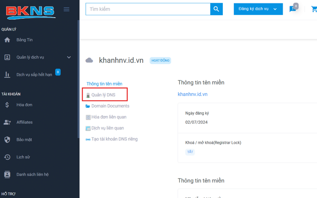 - Hướng dẫn sử dụng hệ thống quản lý dịch vụ (my.bkns.net)