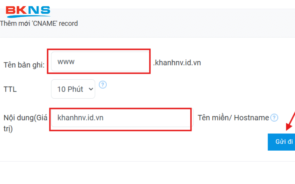 - Bước 3: Thêm bản ghi CNAME vào DNS của tên miền