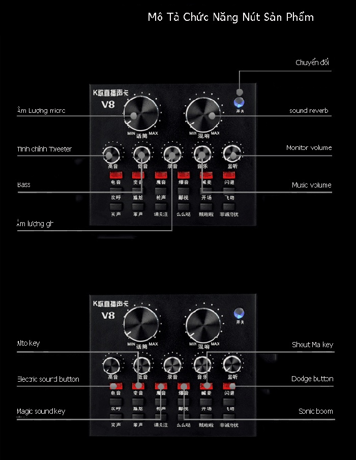 Soundcard Livestream V8 Hát Karaoke Thu âm Phiên Bản Tiếng Anh