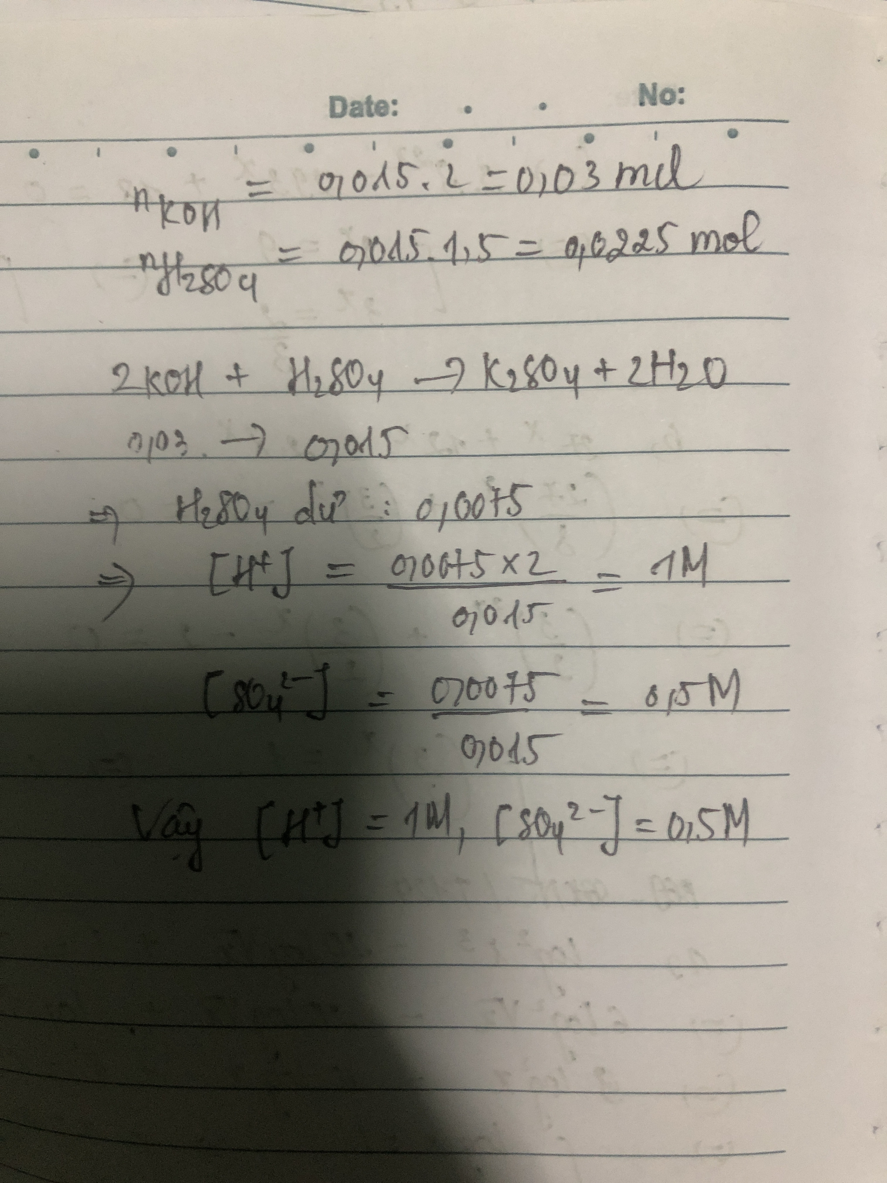 Trộn Lẫn 15ml Dd Koh 2M Với 15ml Dd H2so4 1,5 M. Tính [ion] Trong ...
