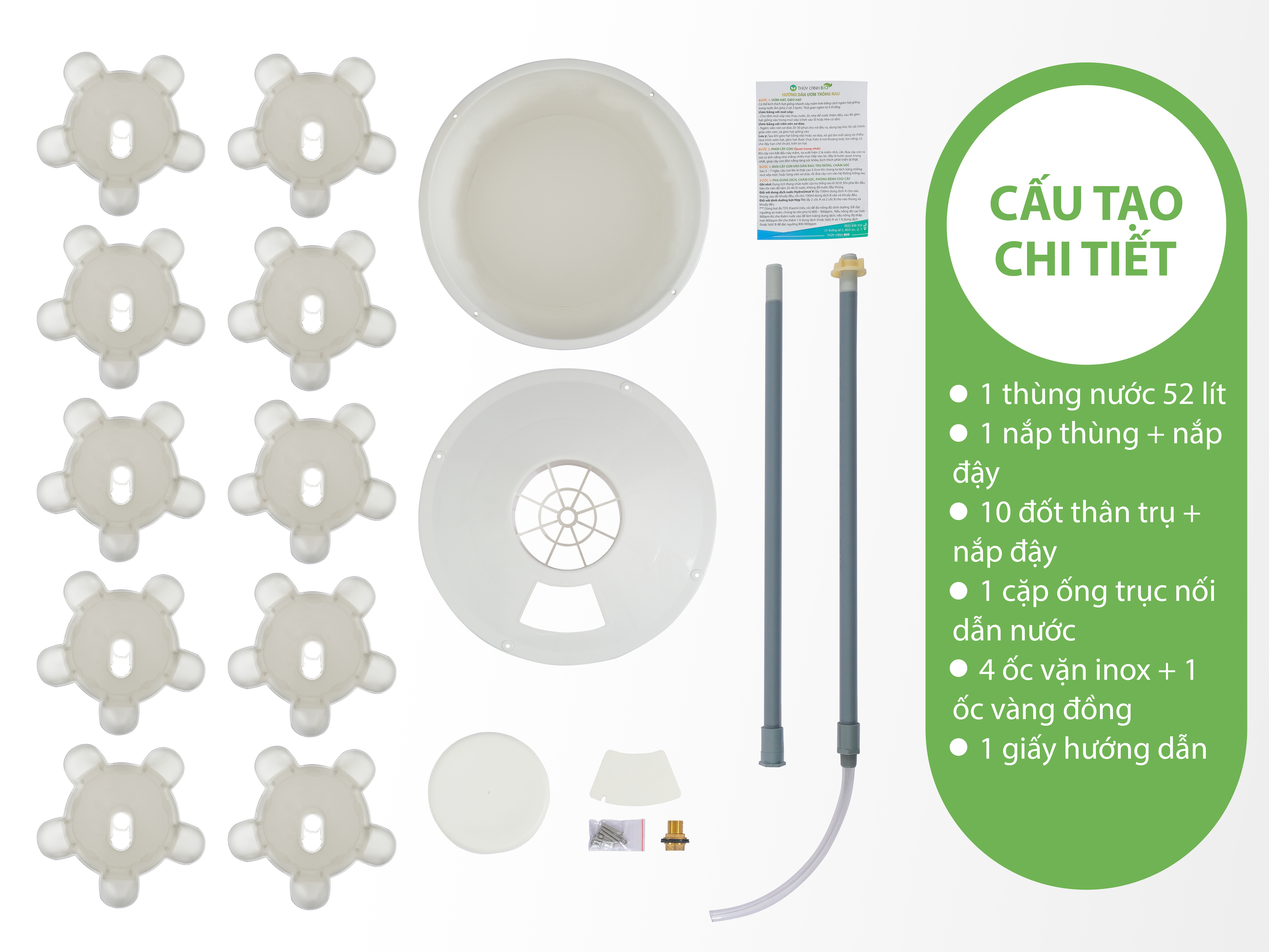 Bộ sản phẩm Thủy canh trụ đứng do Thủy Canh Bio sản xuất bao gồm: