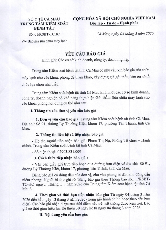 Trung Tâm Kiểm Soát Bệnh Tật Tỉnh Cà Mau