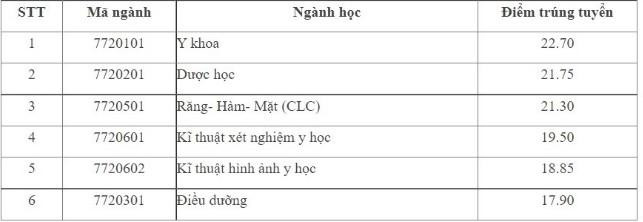 Trường Đại học Y Dược (Đại học Quốc gia Hà Nội) công bố điểm chuẩn trúng tuyển vào các ngành của trường theo kết quả bài thi đánh giá năng lực (HSA). Năm nay, Y khoa là ngành có điểm chuẩn cao nhất, với 22,7 điểm, cụ thể điểm từng ngành như sau: